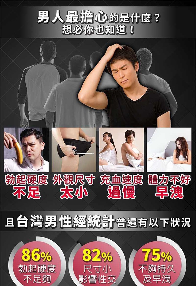 堅持使用半個月了,不僅改善了老公的3分鐘早洩現在持久力達到了30分鐘左右,陰莖在這使用期間得到了二次發育,在長度和維度上都有增長...並且使用期間沒有出現任何的副作用,停用3個月也沒有反彈,依舊保持著威猛的戰鬥力,令人詫異的18cm粗大陰莖~~~現在老公床上技術和姿勢都讓我離不開他了~真的感謝(藍蝌蚪雙效片)讓我們更性福!更甜蜜!