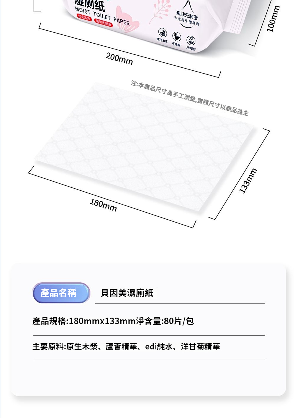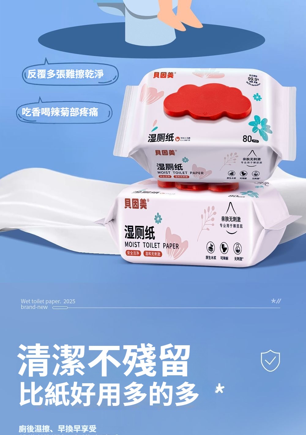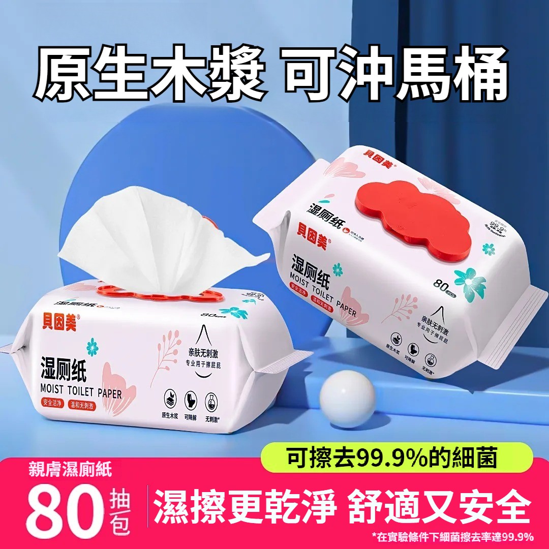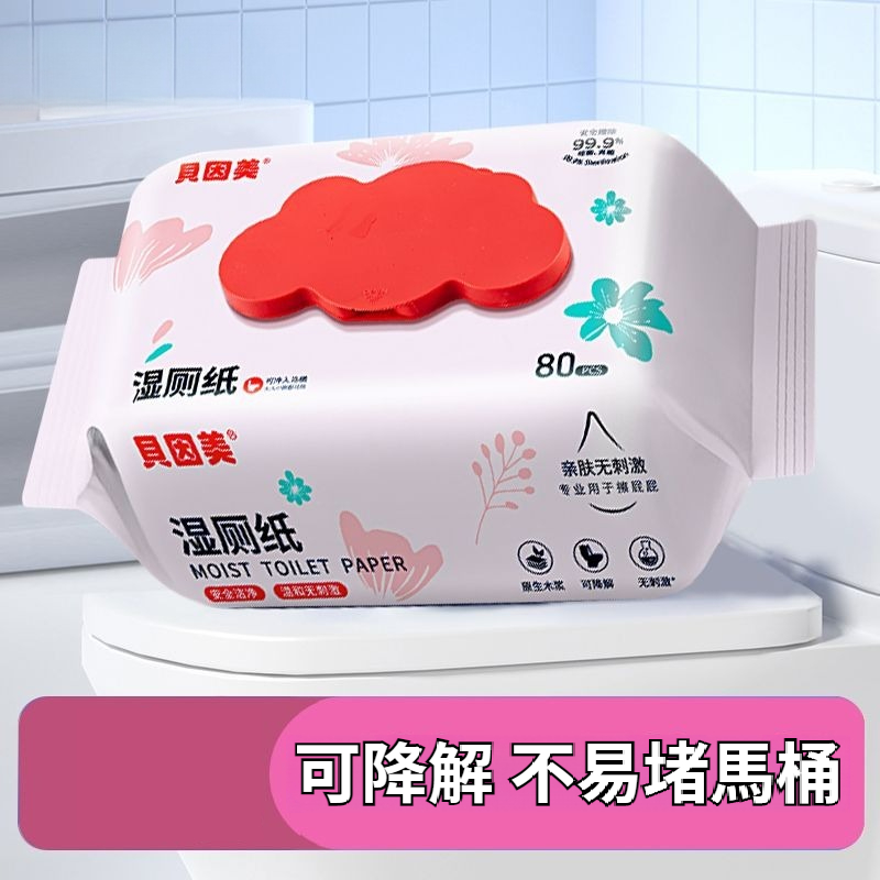 親膚濕廁紙,80抽大包裝家庭裝親膚柔軟舒適濕廁紙