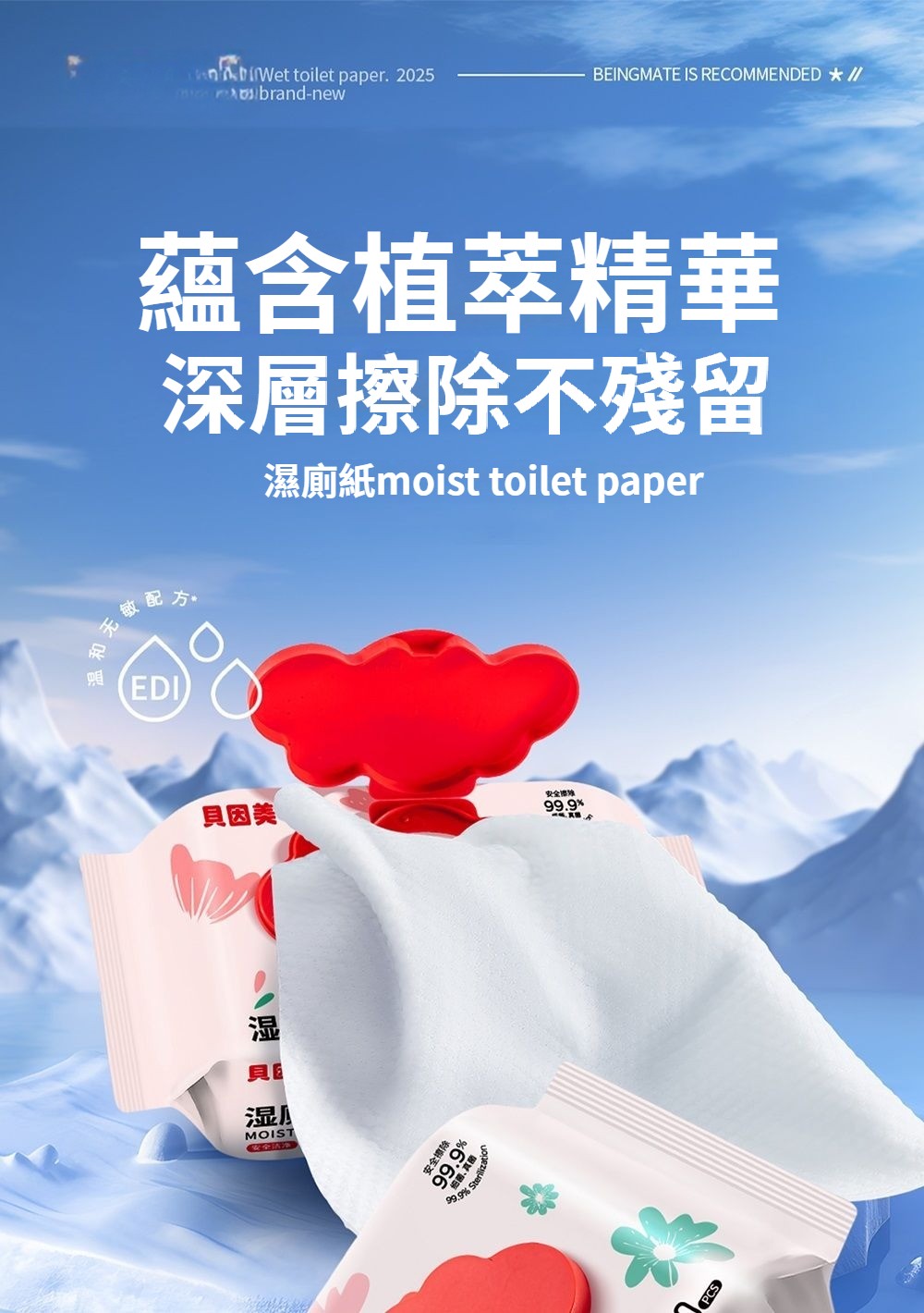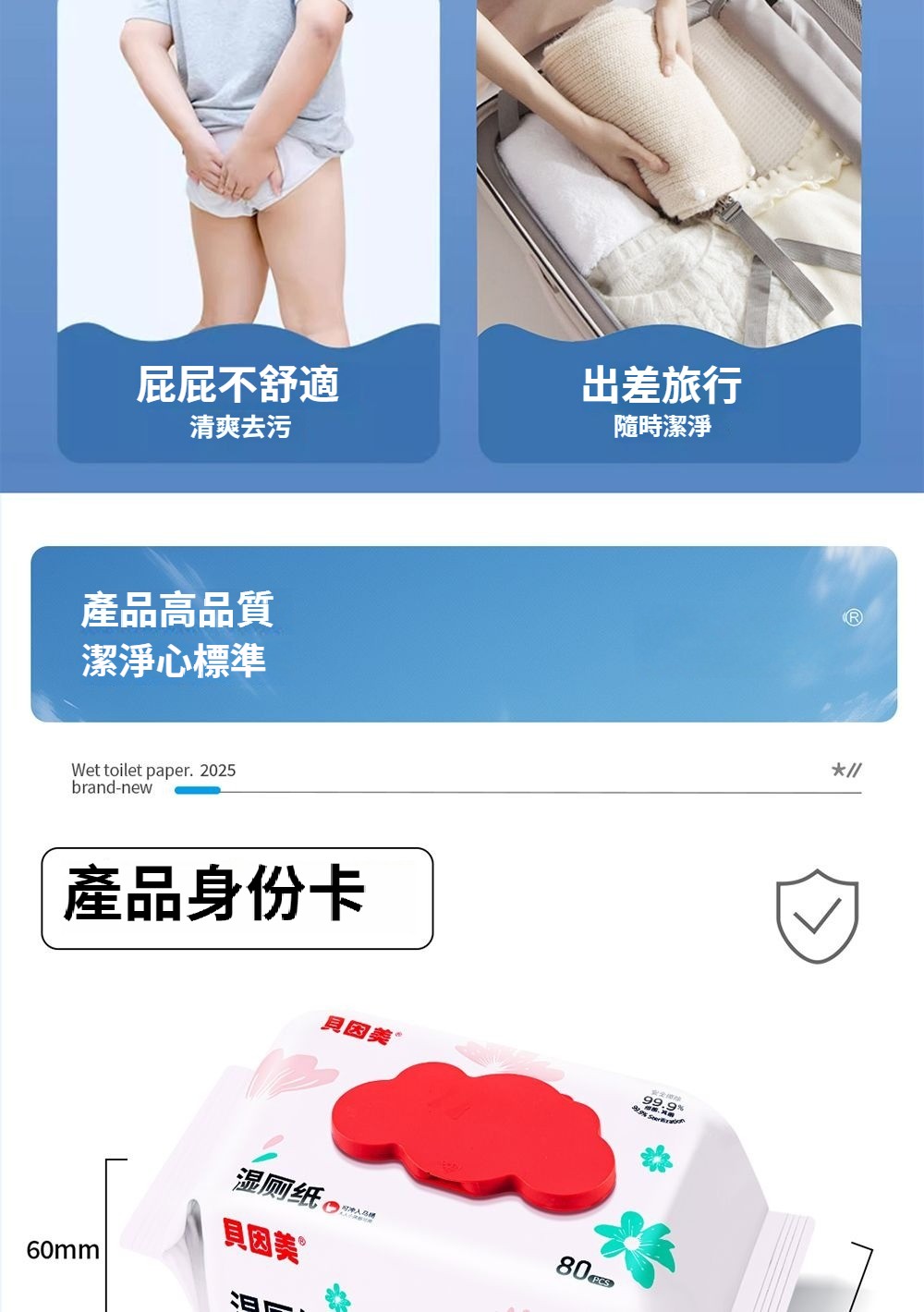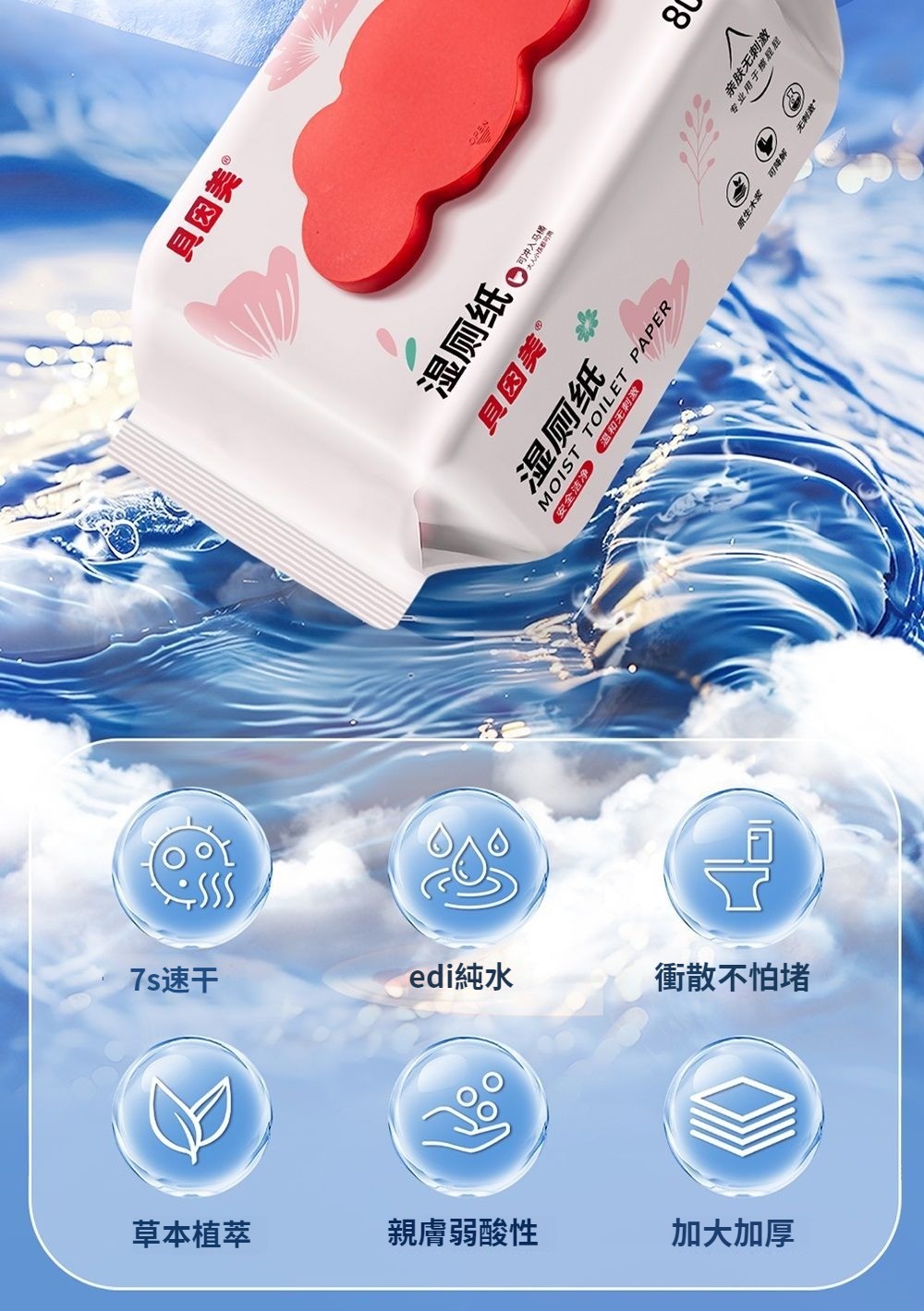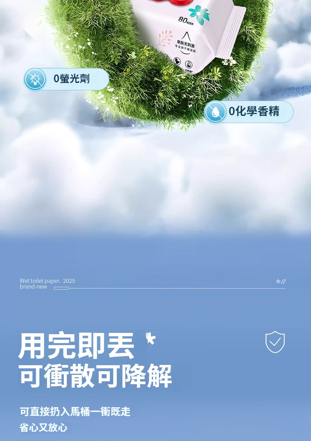 親膚濕廁紙,80抽大包裝家庭裝親膚柔軟舒適濕廁紙