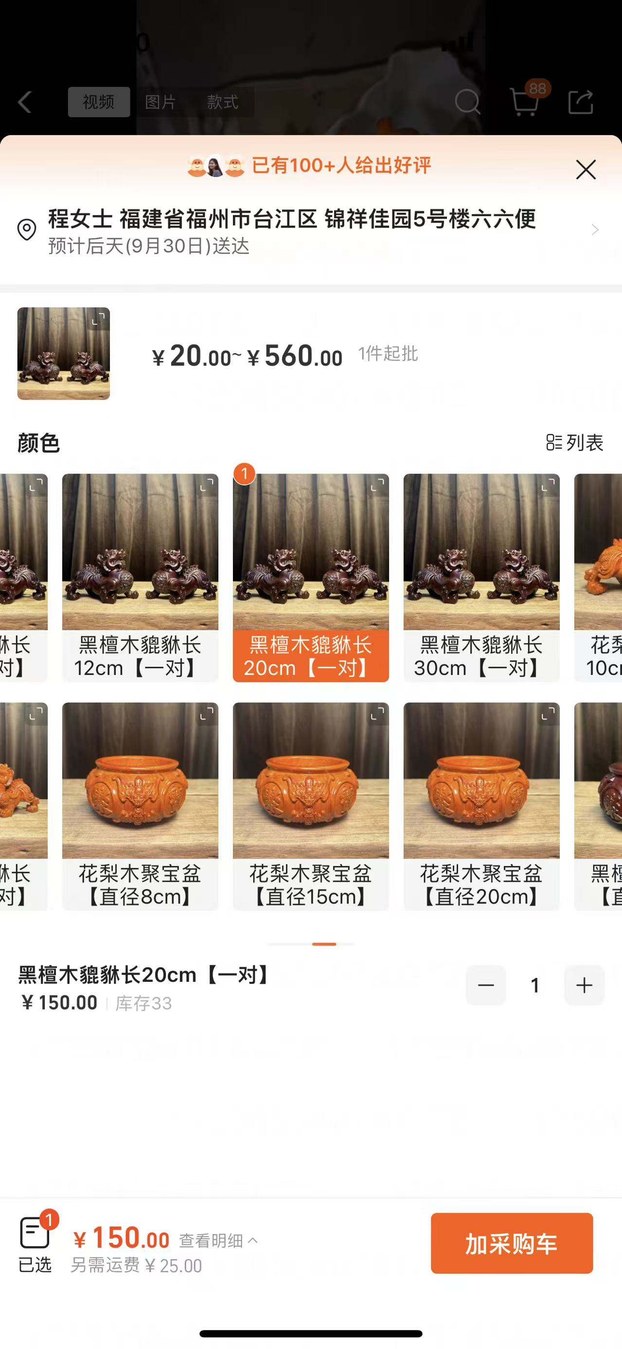 黑檀木貔貅一對20cm
