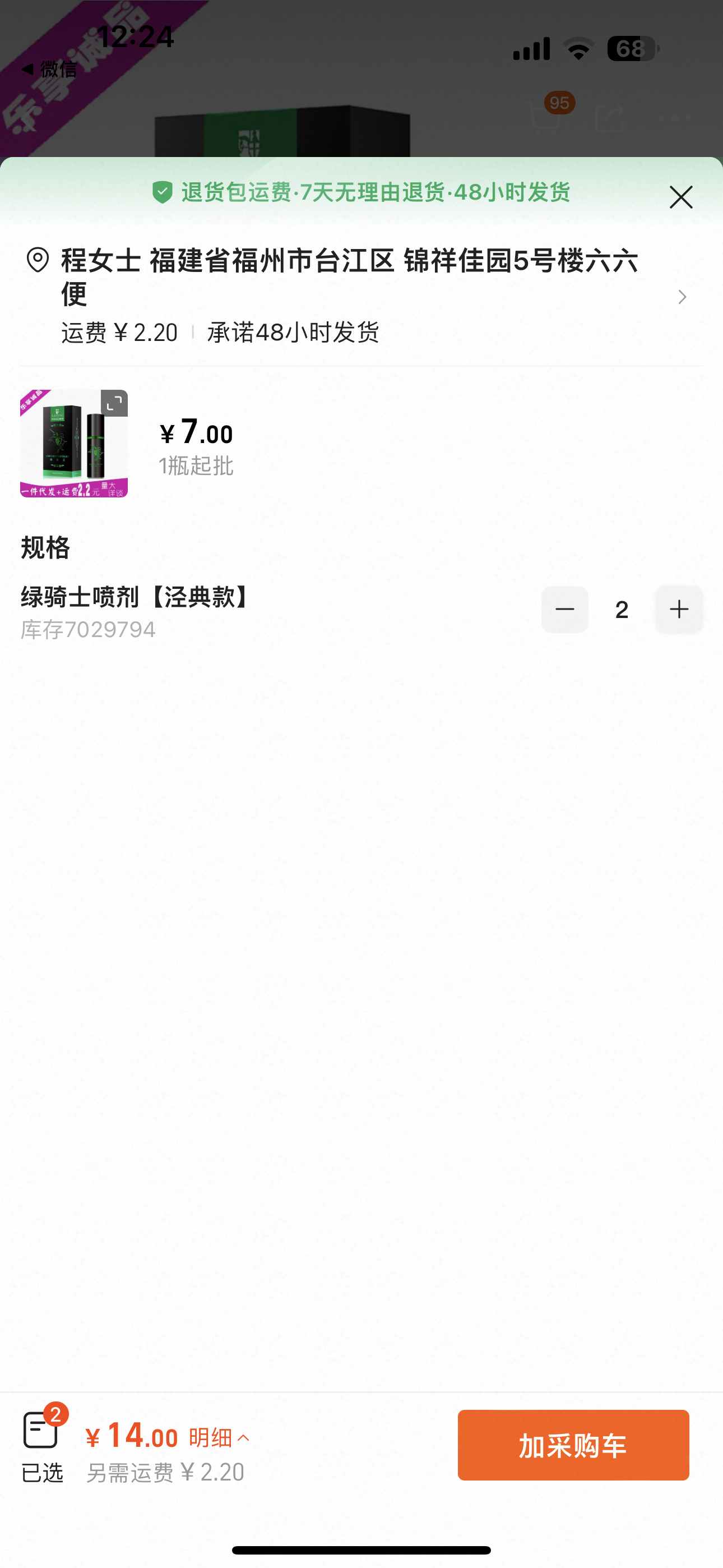 ①绿骑士喷剂2瓶②印度黑馬1粒