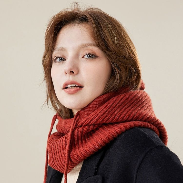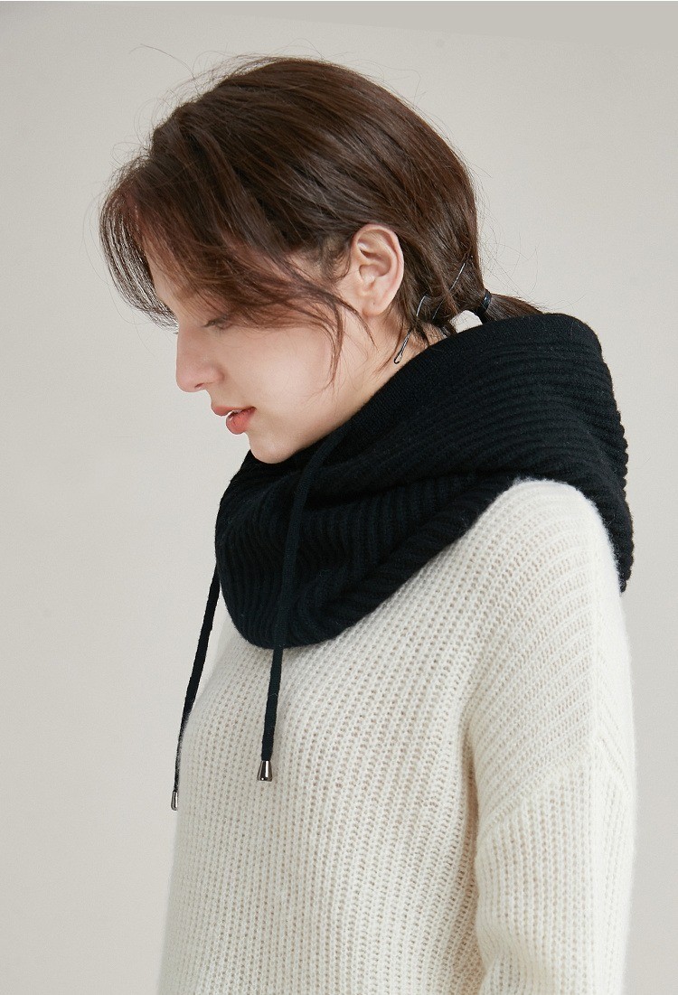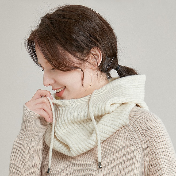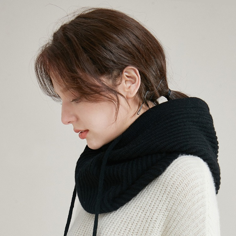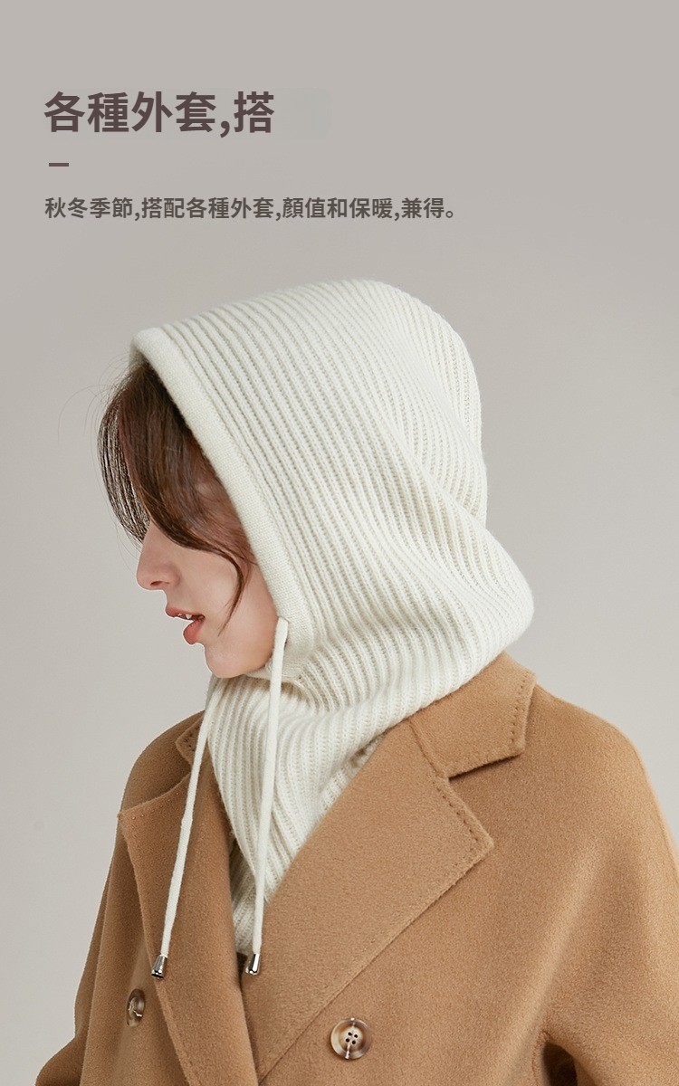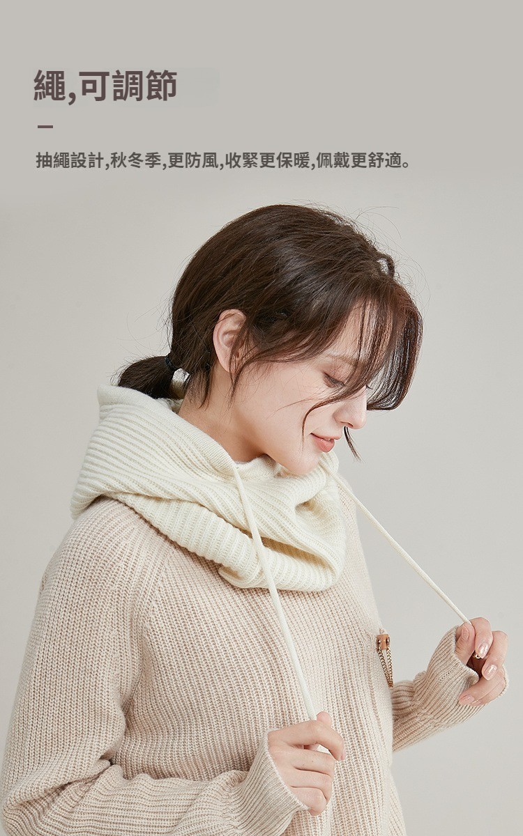 第 1 件 : 帽子圍脖一體秋冬新款男女時尚洋氣百搭保暖套頭針織毛線抽繩帽子