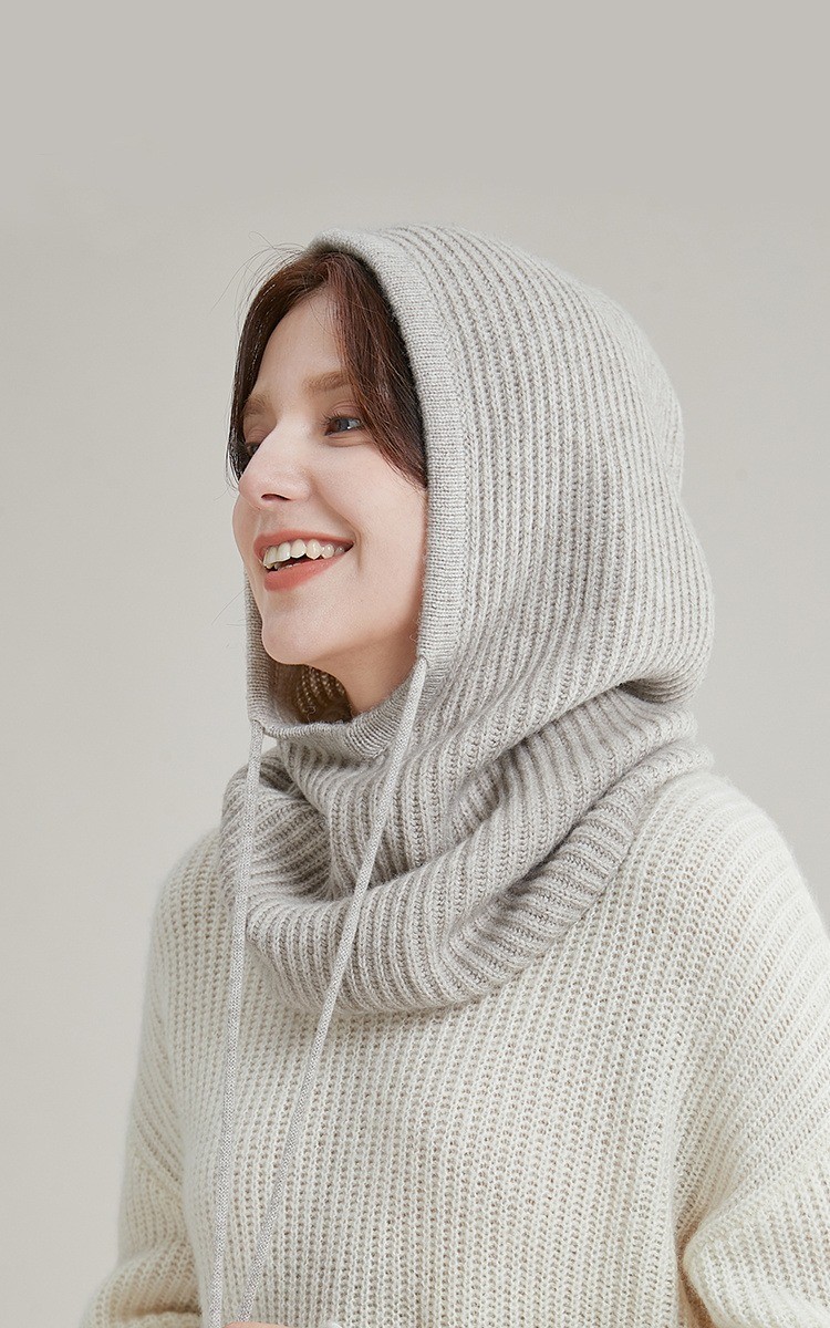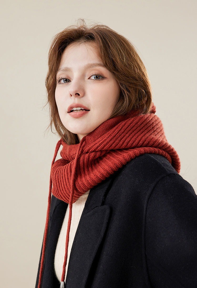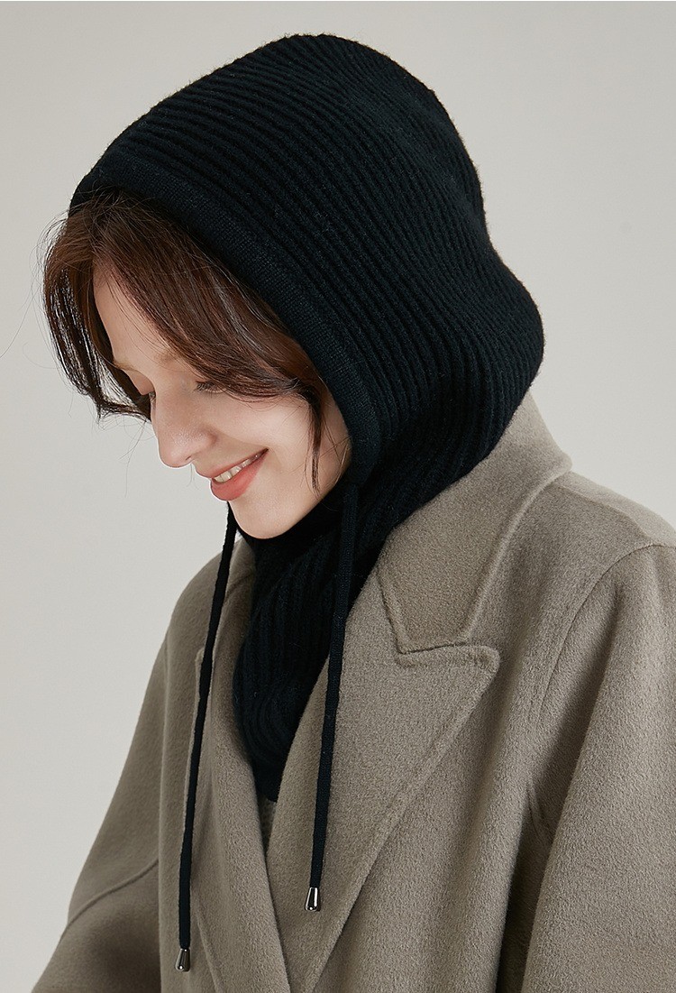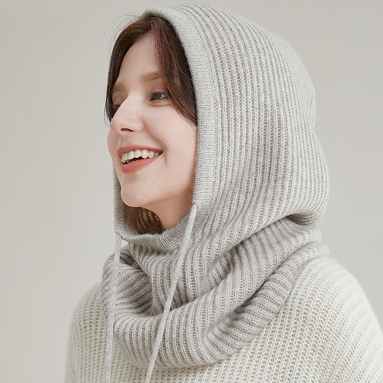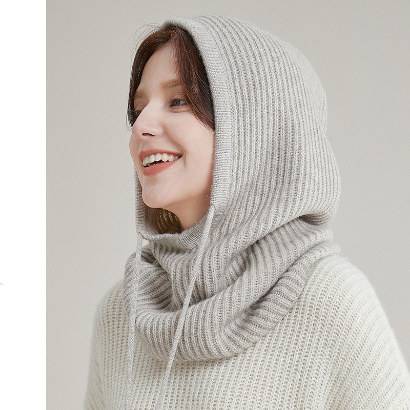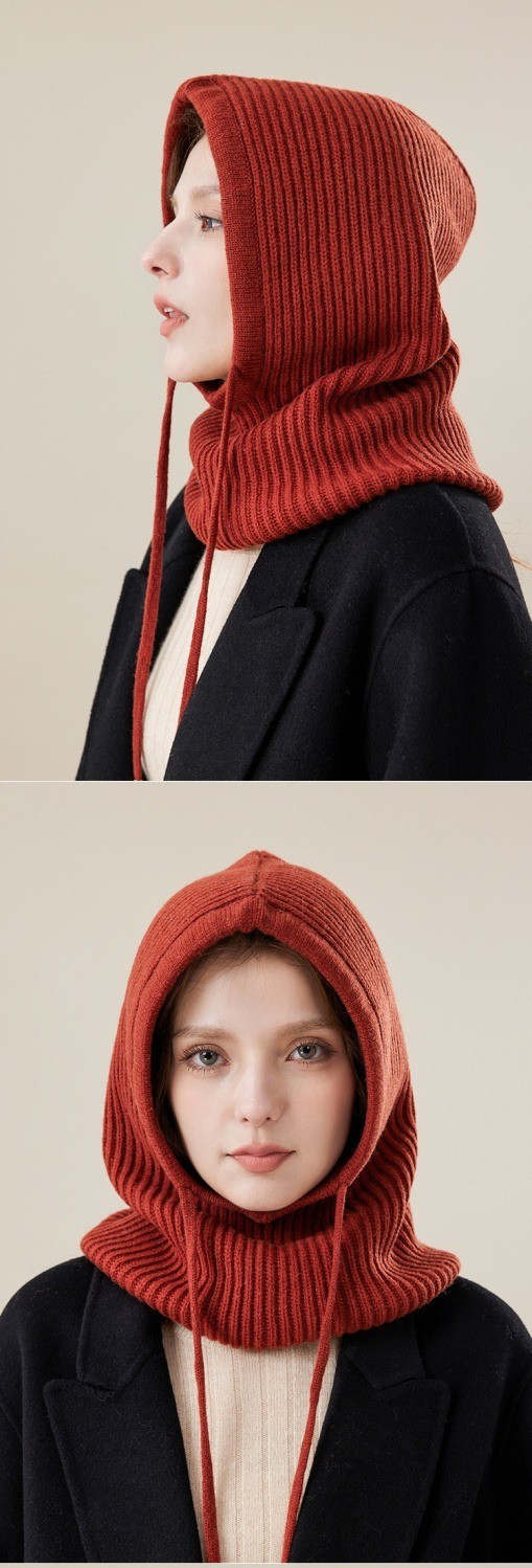 第 1 件 : 帽子圍脖一體秋冬新款男女時尚洋氣百搭保暖套頭針織毛線抽繩帽子