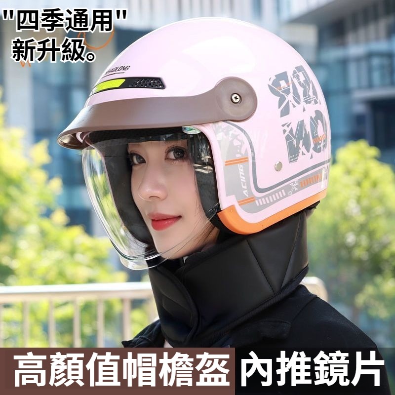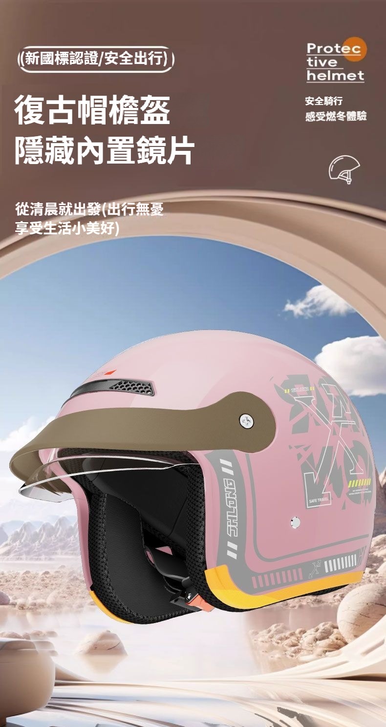 第 1 件 : 3C電動車頭盔新國標女生復古四季通用冬季保暖隱藏式鏡片均碼