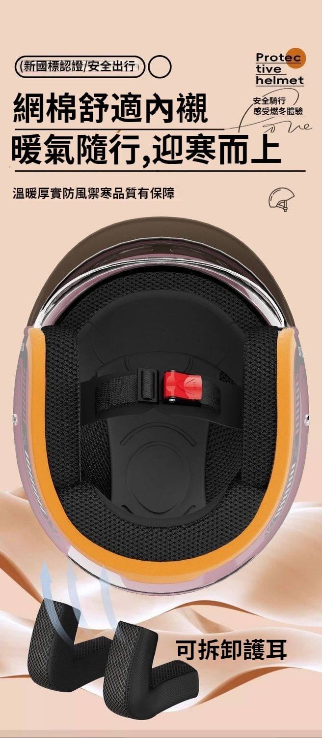 第 3 件 : 3C電動車頭盔新國標女生復古四季通用冬季保暖隱藏式鏡片均碼