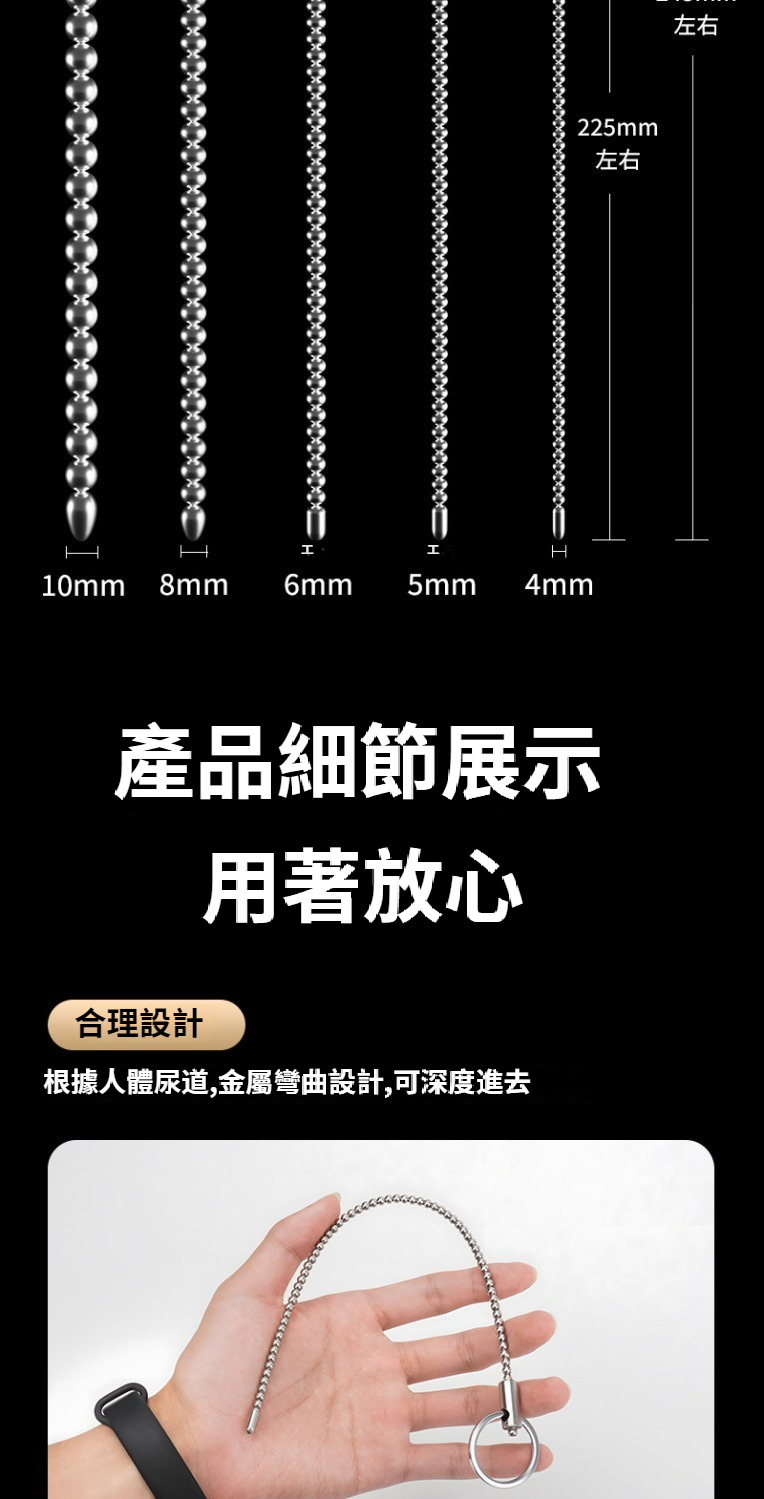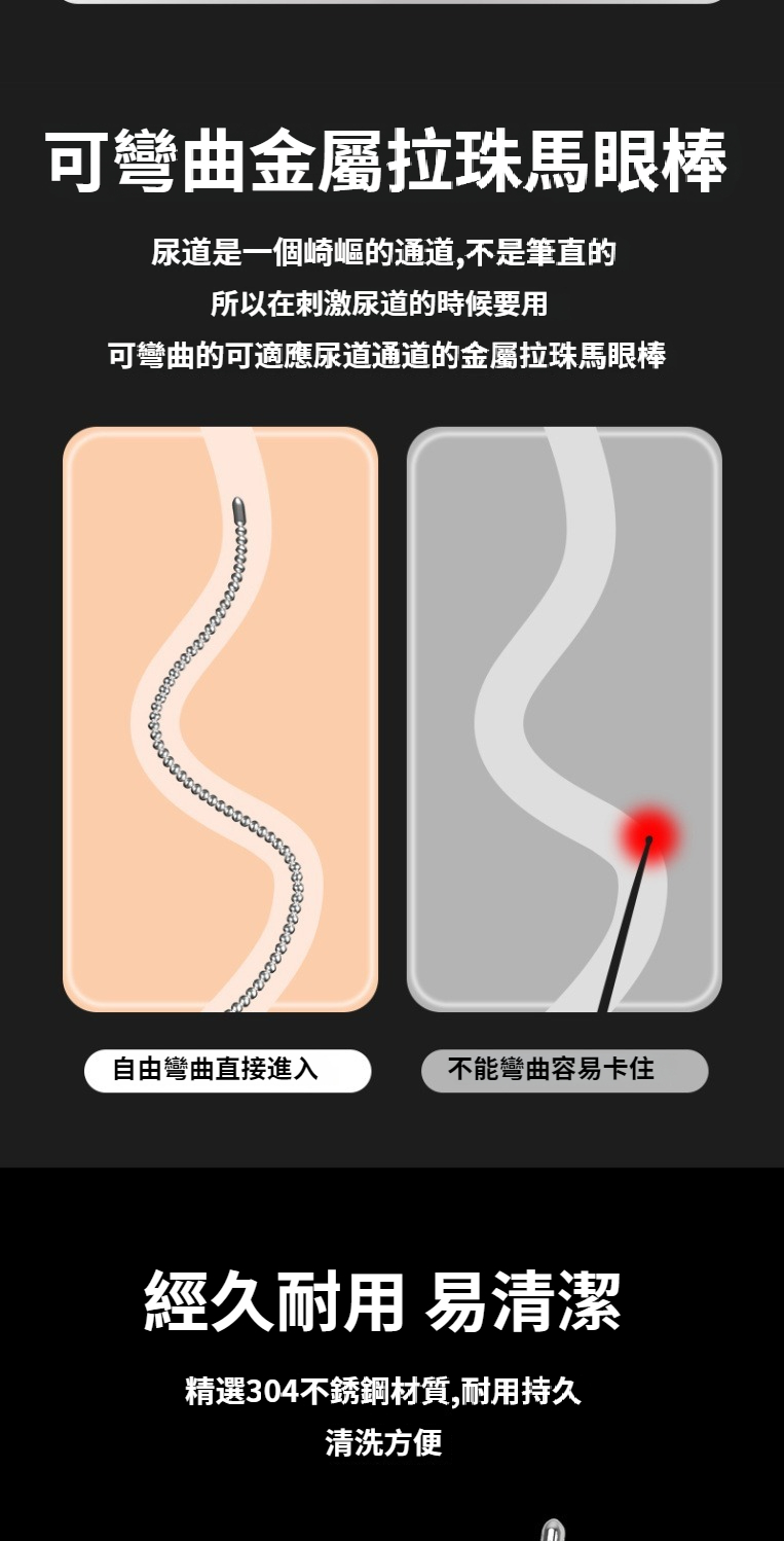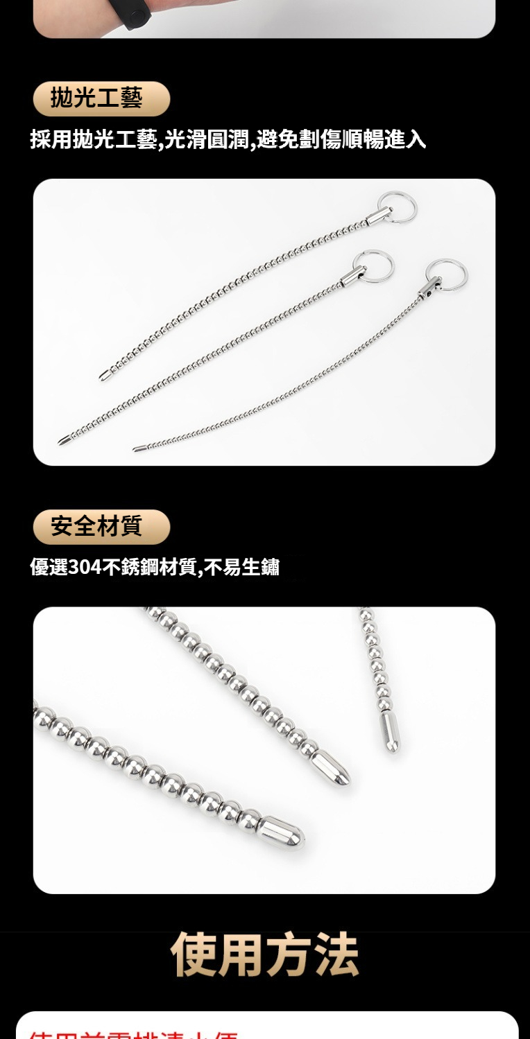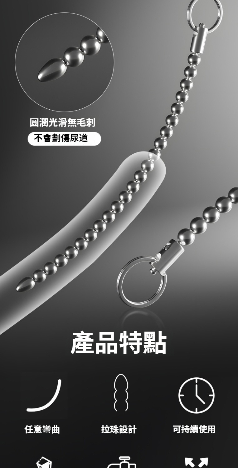 不鏽鋼金屬拉珠馬眼棒超長尿道馬尾棒男用尿道擴張自慰sm情趣用品