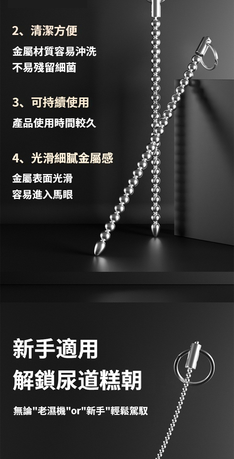 不鏽鋼金屬拉珠馬眼棒超長尿道馬尾棒男用尿道擴張自慰sm情趣用品 NT$ 850