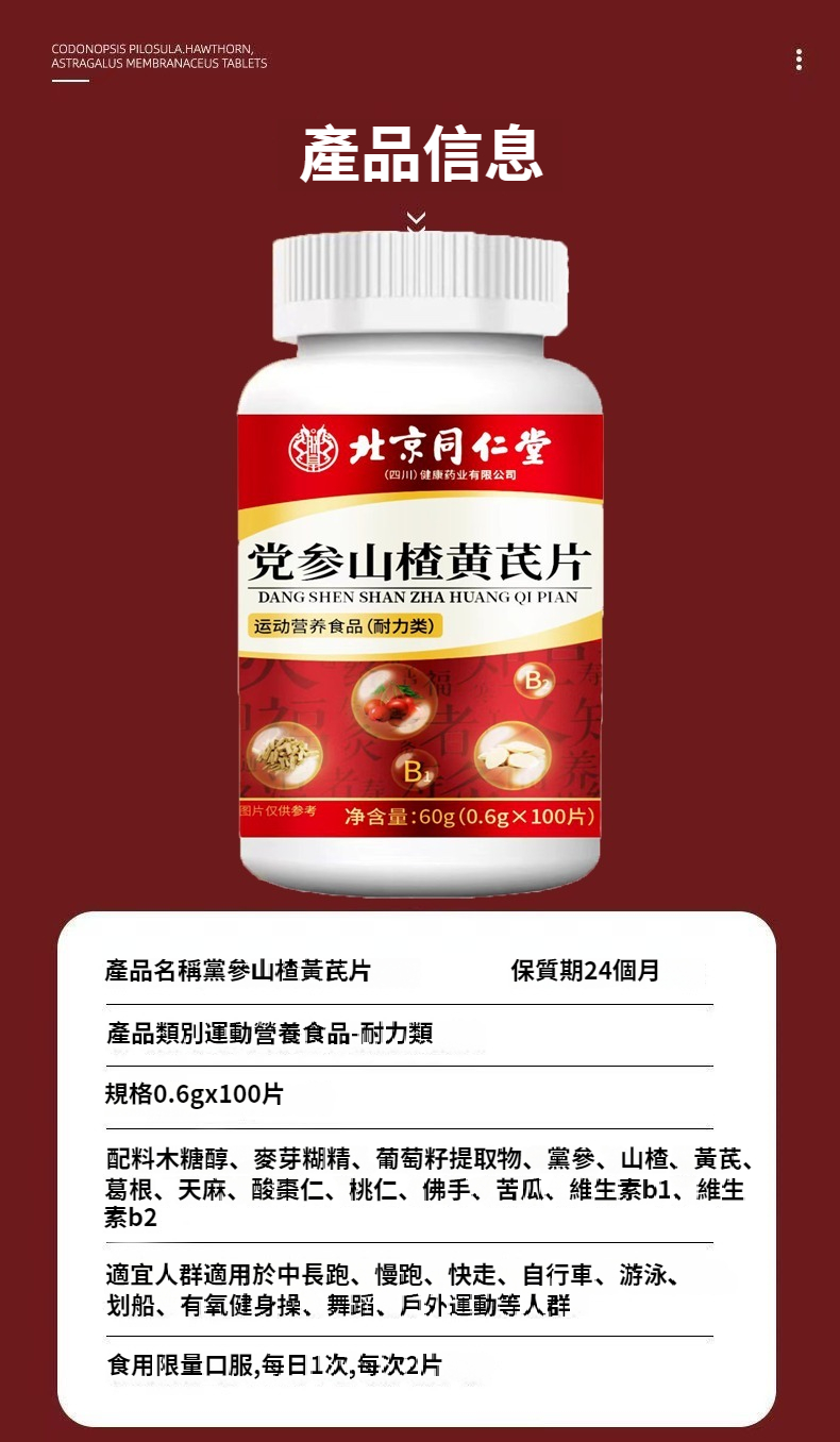 北京同仁堂黨參山楂黃芪片運動營養官方正品