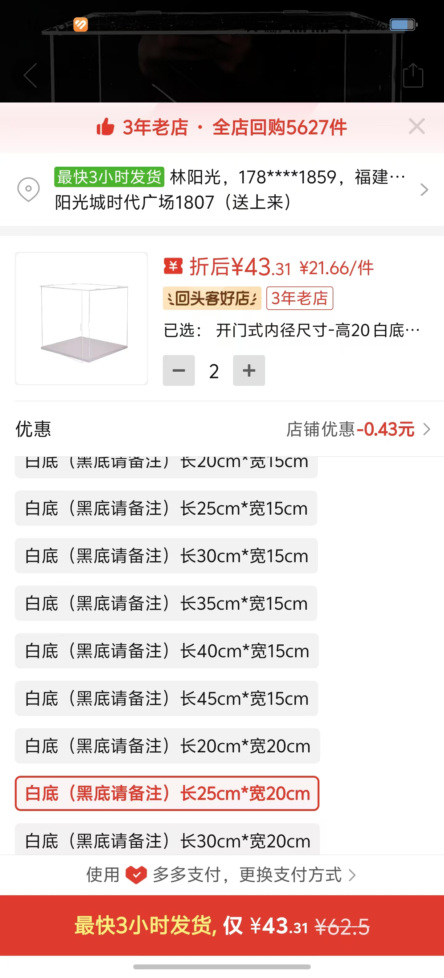 ①亞克力透明盒子高20,長25,寬20【兩組】+②無痕膠1.8*5CM【三盒】https://mobile.yangkeduo.com/goods1.html?ps=a2QmYCVAnqhttps://qr.1688.com/s/Pwbm3sFu