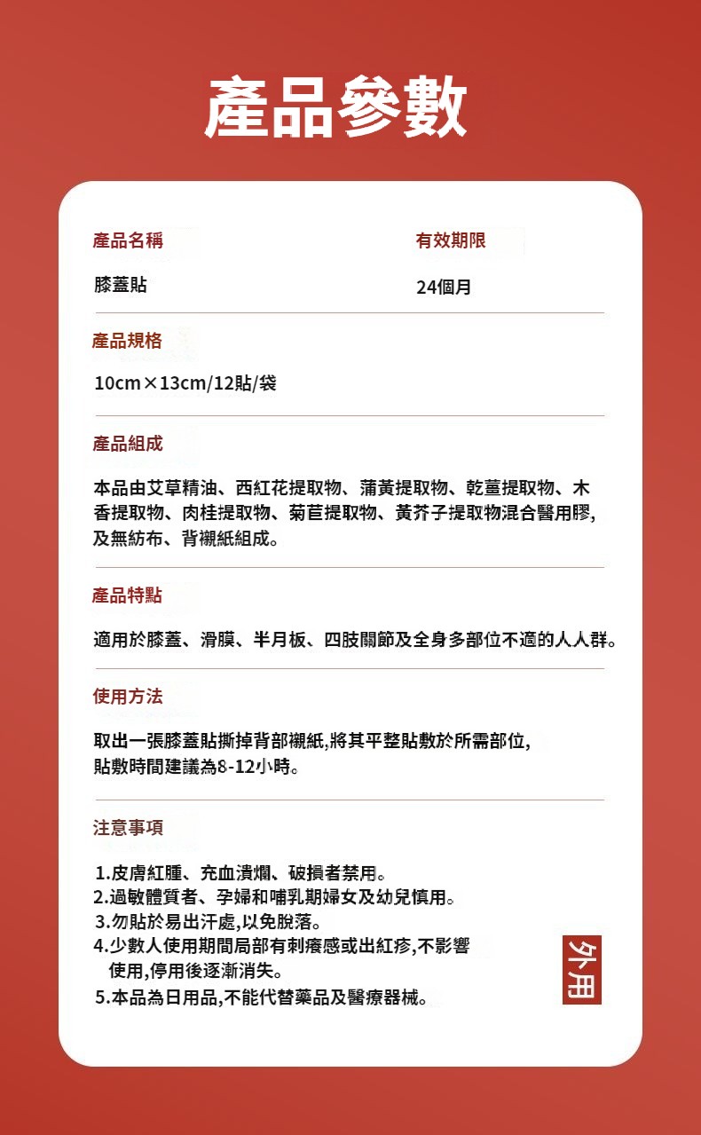 膝蓋貼關節疼痛滑膜積液半月板損傷緩解老寒腿艾灸膏藥貼 NT$ 899