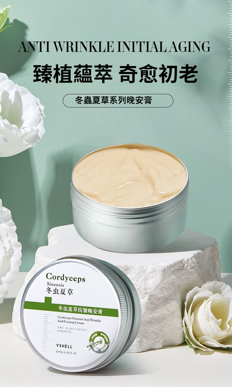 冬蟲夏草抗皺晚安膏保濕補水提拉緊緻淡紋去黃提亮抗初老面霜