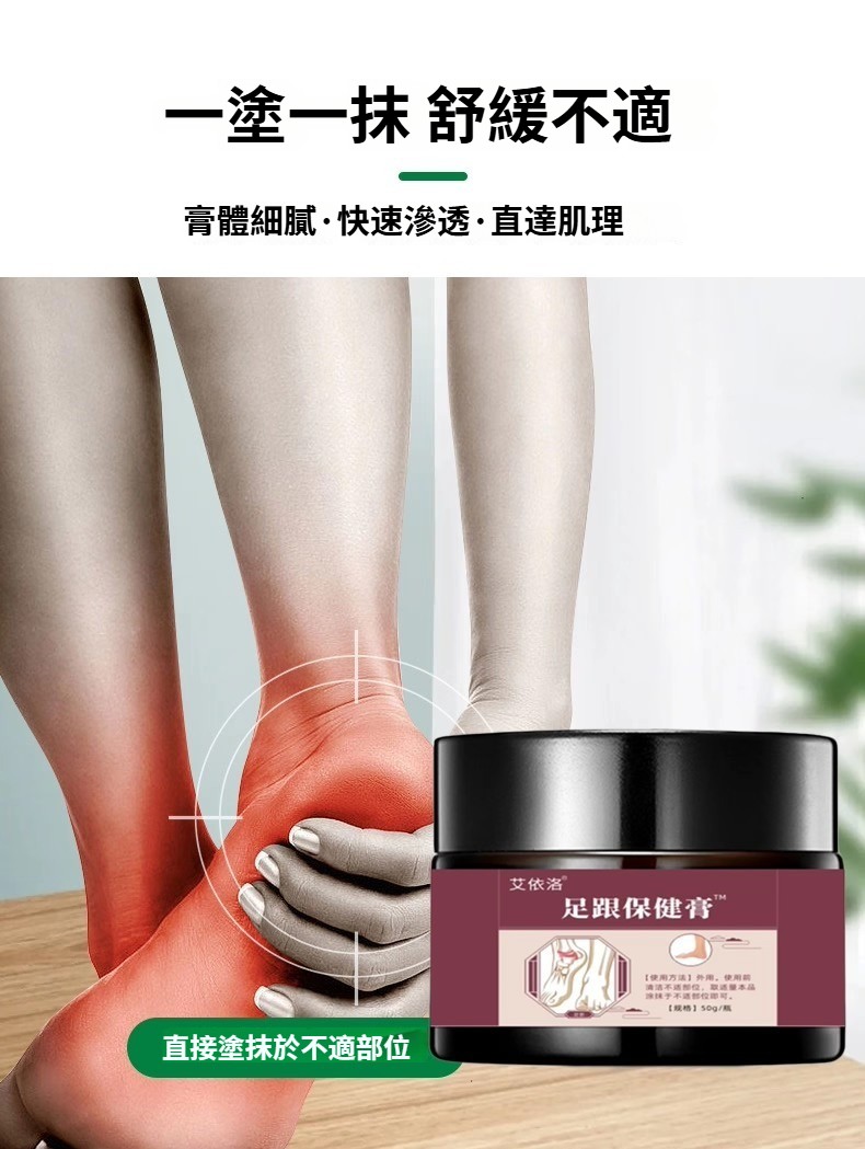 【足跟消痛膏】專治足跟痛的草本配方、針對足跟骨刺、足底筋膜炎、跟腱炎研製,走久站久的腳底痛通通有效、人工精選中草藥成分,溫和無刺激、高滲透質地,塗抹後直達痛點,尤其適合長時間站立、行走的人群 AED 998