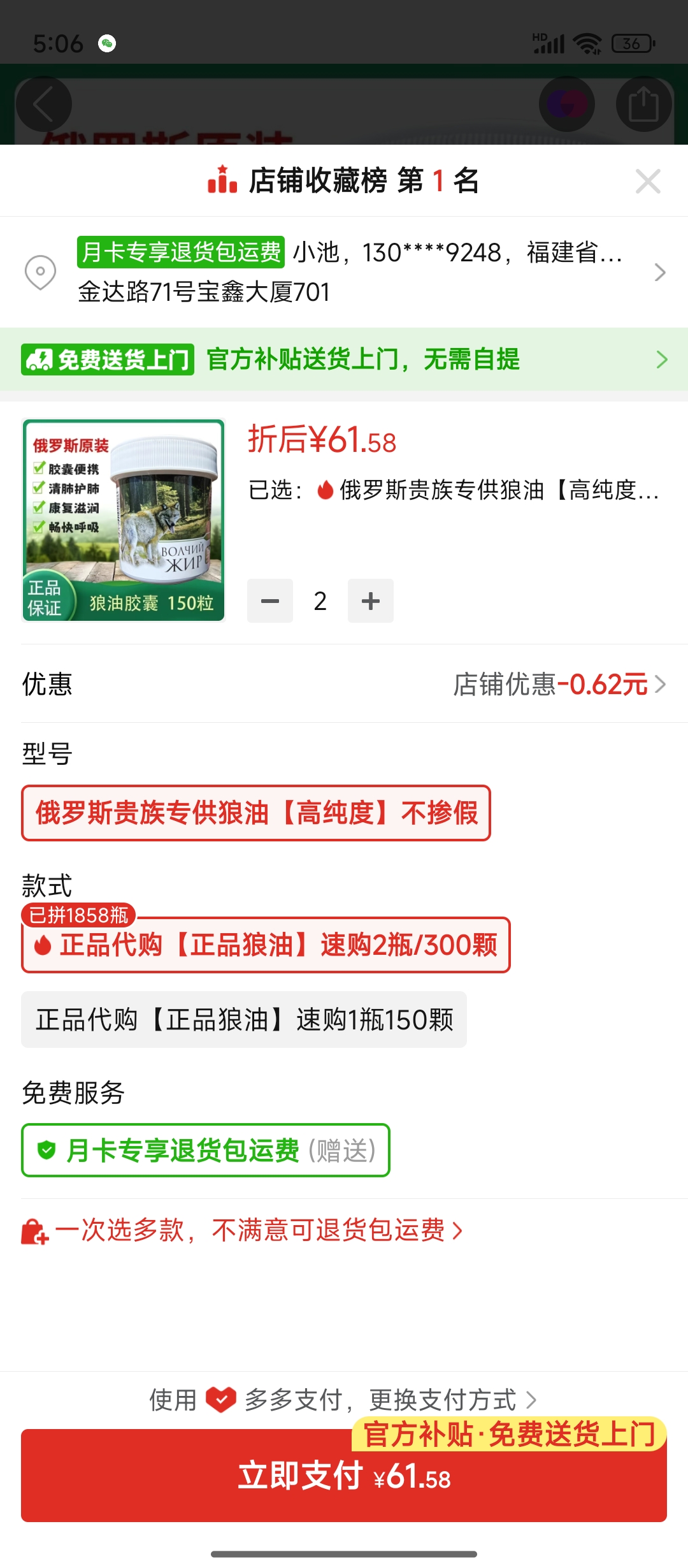 俄羅斯原裝進口狼油膠囊(小婕寄)
