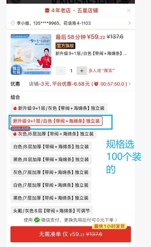 ①kn95口罩 新升級9+1层/白色 【100個裝】https://mobile.yangkeduo.com/goods1.html?ps=noZxdjRfZ2②橘紅化痰顆粒 10盒