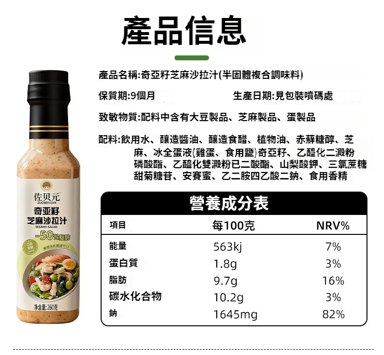 奇亞籽沙拉汁260g*1瓶