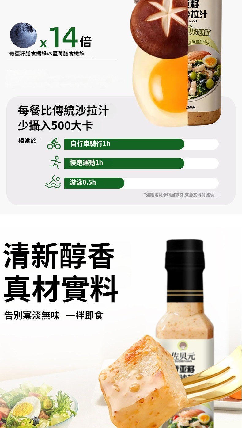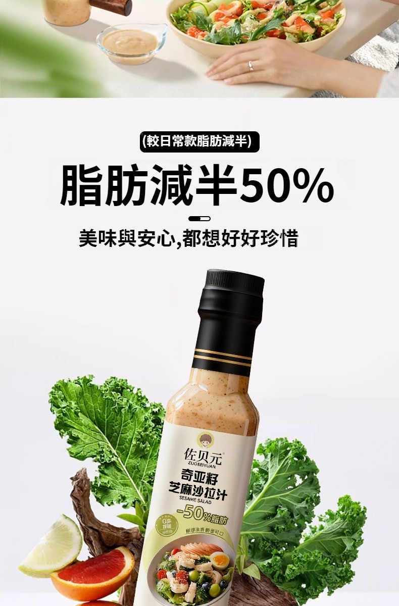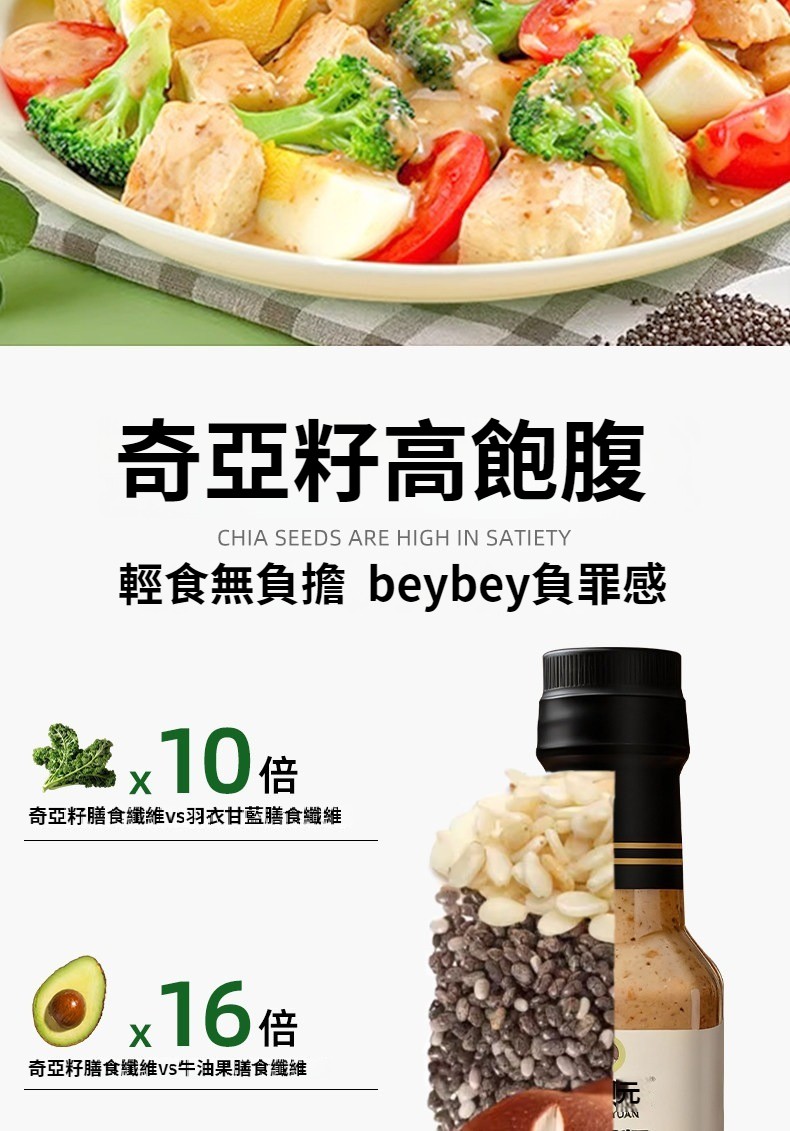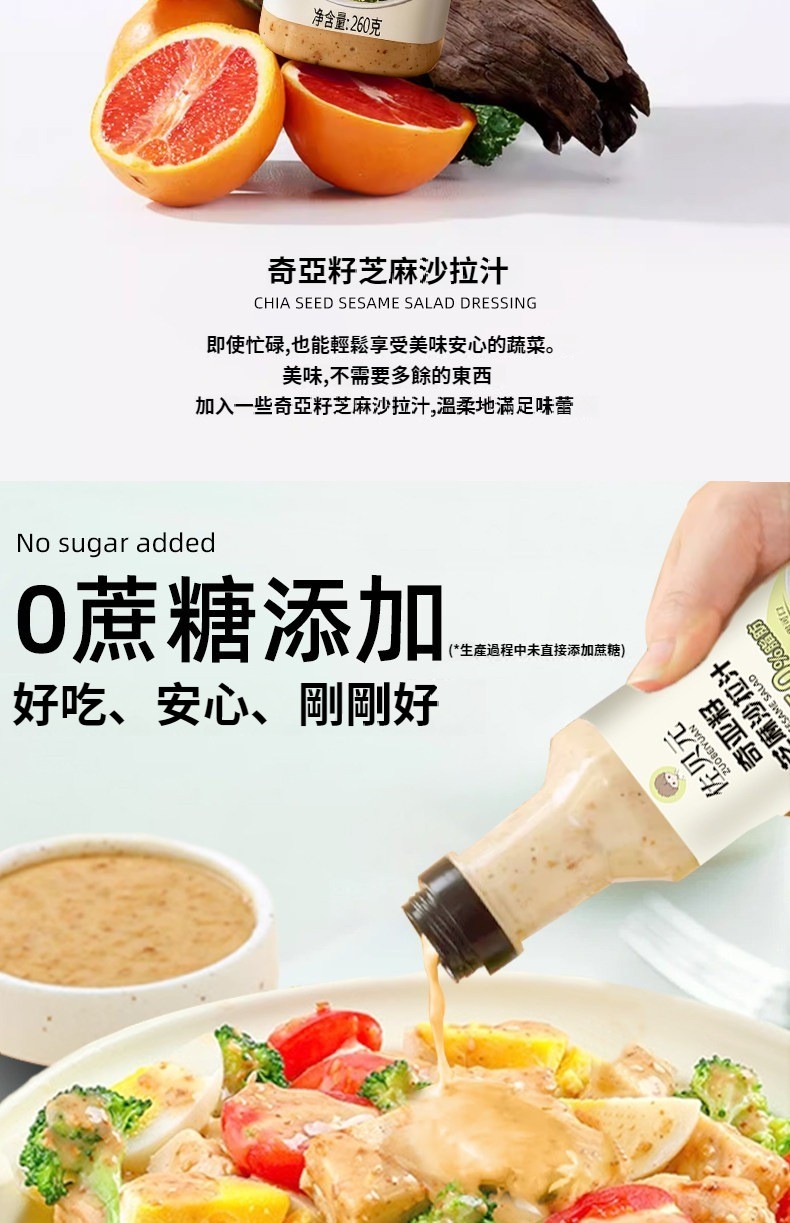 第 3 件 : 沙拉醬蔬菜水果專用0脂肪油醋汁減焙煎芝麻奇亞籽沙拉汁