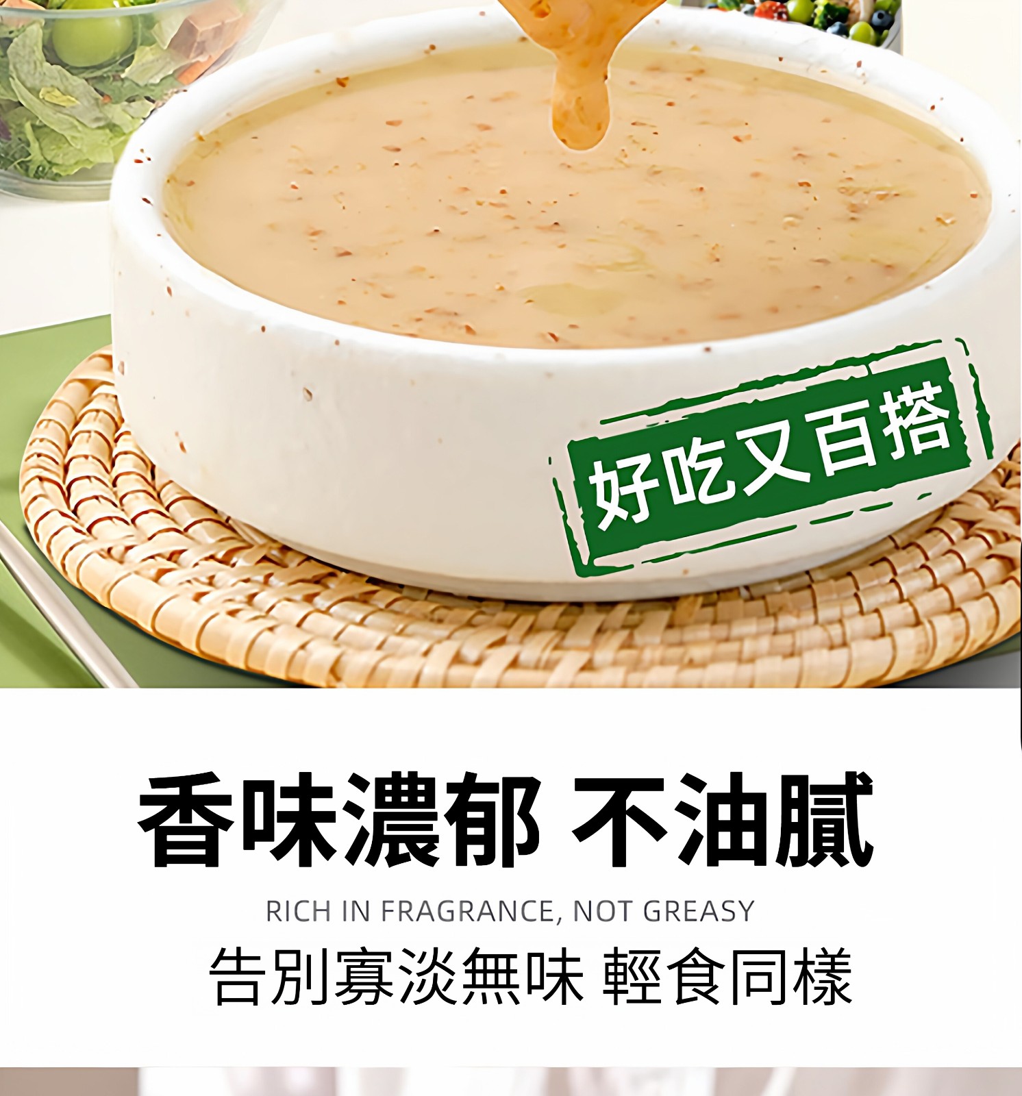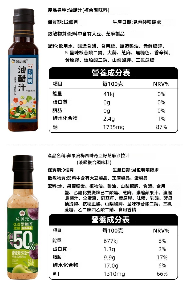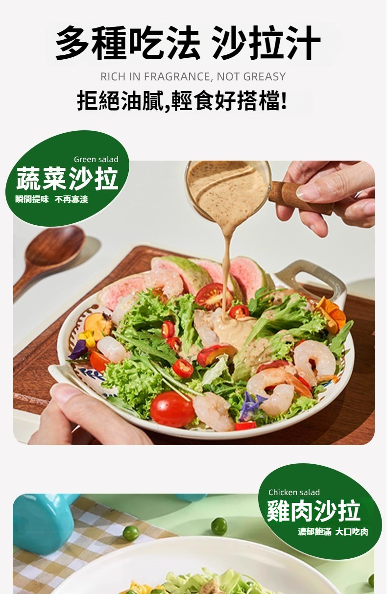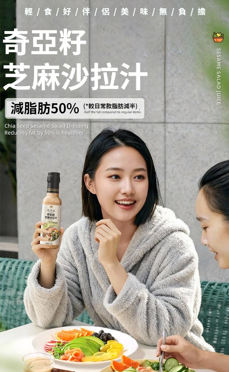 第 3 件 : 沙拉醬蔬菜水果專用0脂肪油醋汁減焙煎芝麻奇亞籽沙拉汁