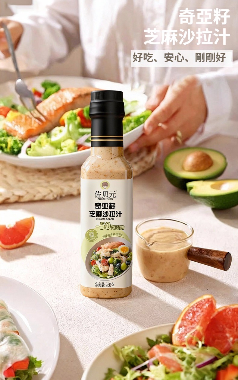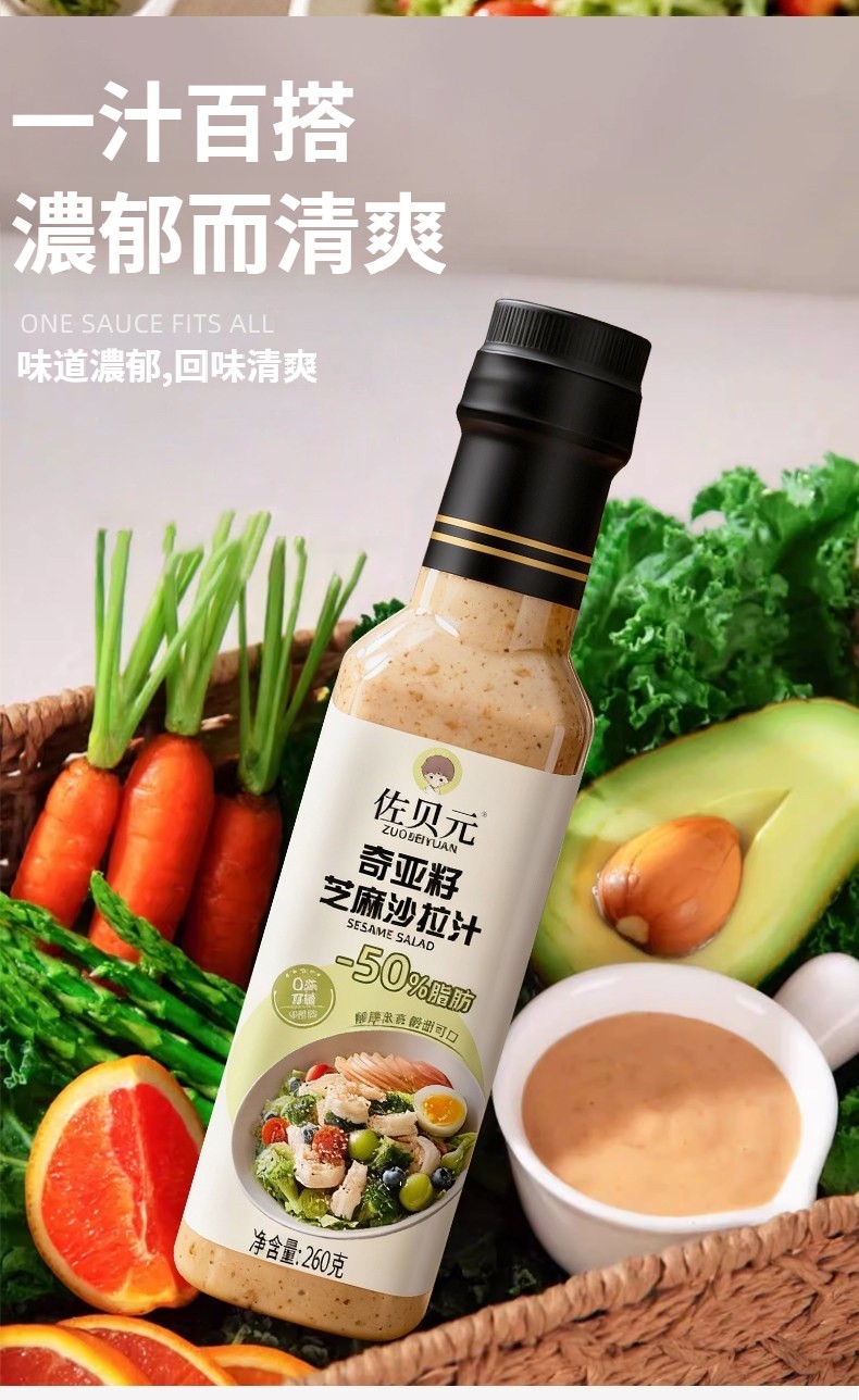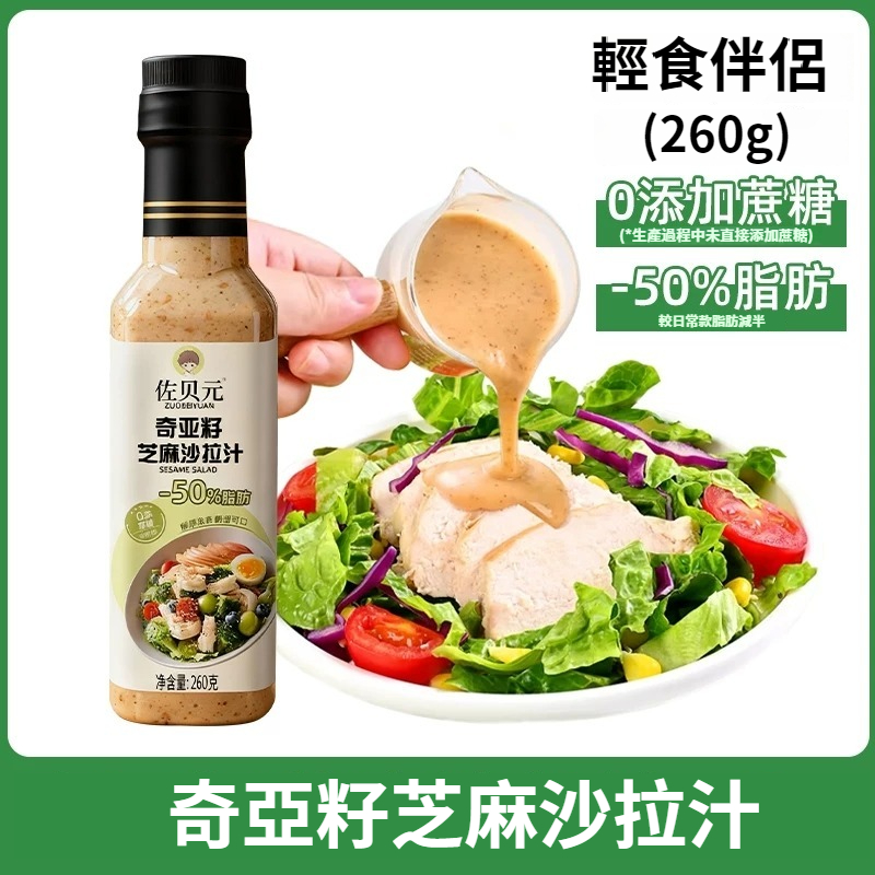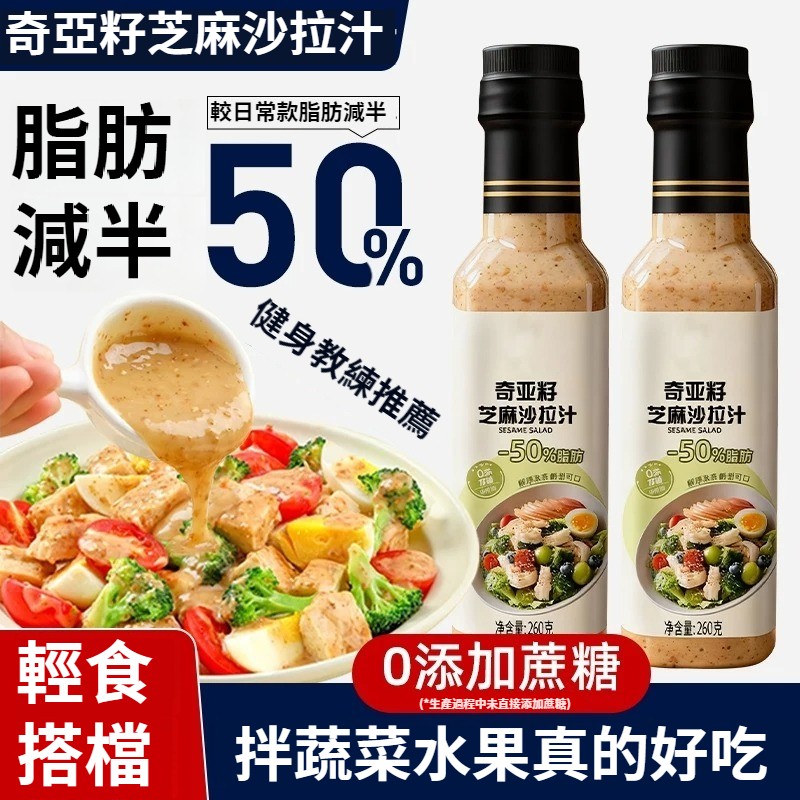 第 1 件 : 沙拉醬蔬菜水果專用0脂肪油醋汁減焙煎芝麻奇亞籽沙拉汁