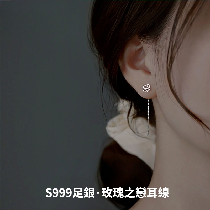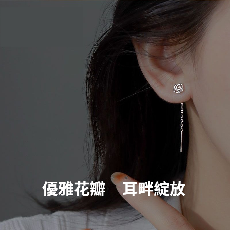 999純銀玫瑰耳線女超仙網紅高級足銀耳環耳環禮物