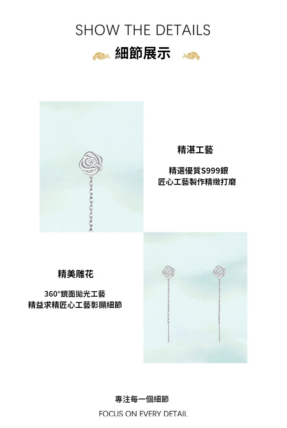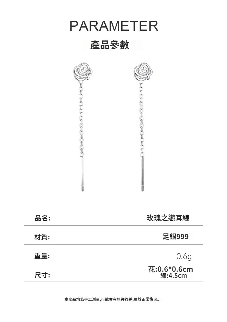 【通體999足銀】玫瑰之戀耳線