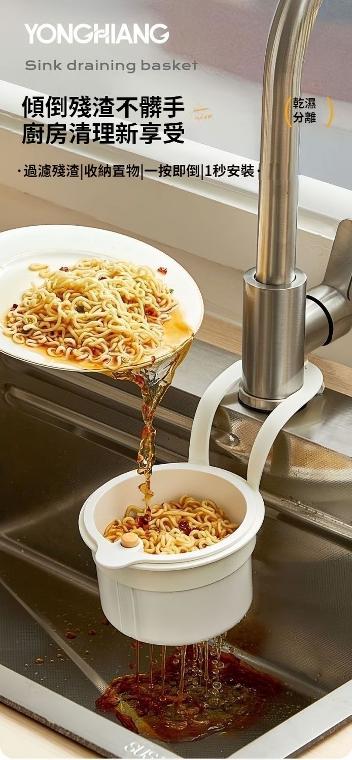 第 2 件 : 廚房瀝水籃洗菜水槽瀝水過濾網廚房殘渣乾濕分離垃圾食物殘渣過濾