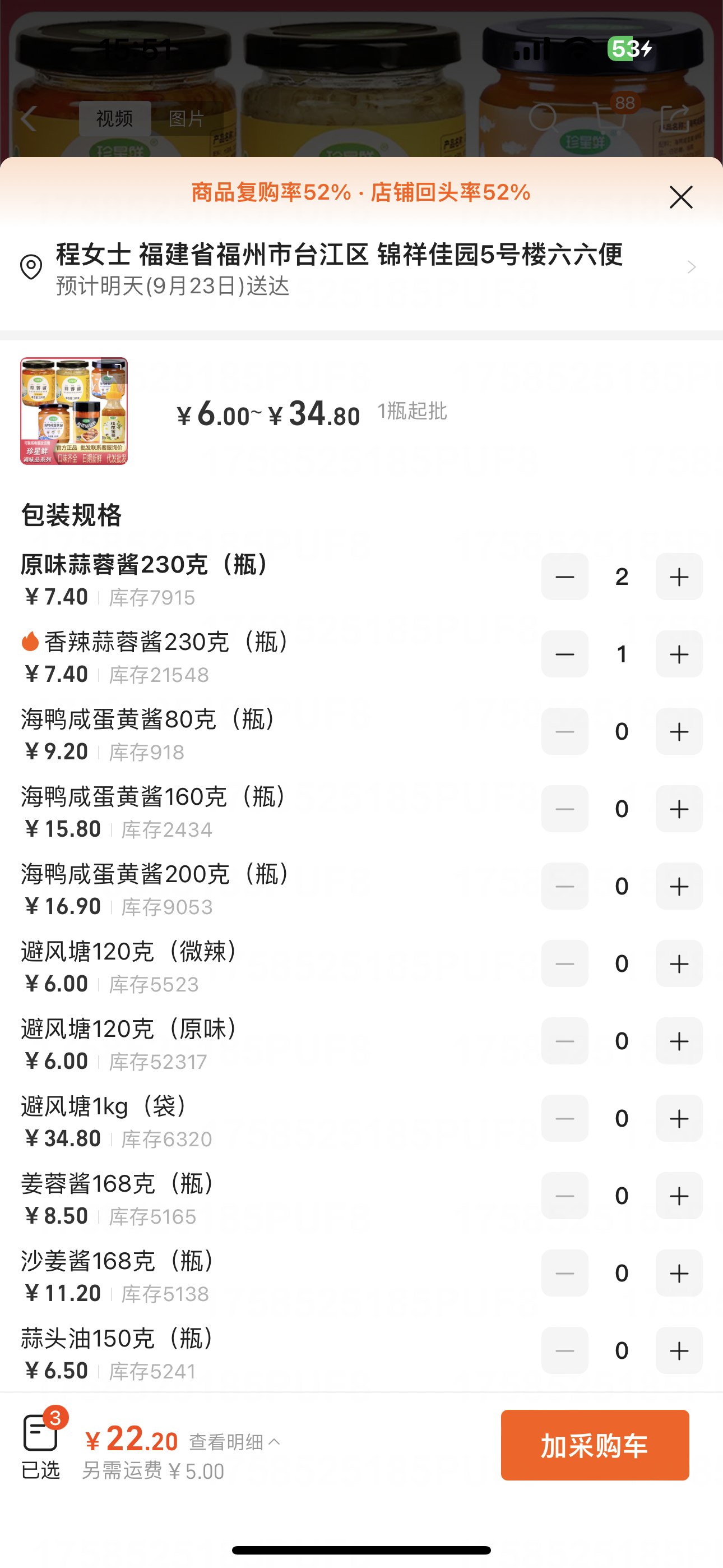 ①珍星蒜蓉酱原味2瓶+②珍星蒜蓉酱香辣1瓶