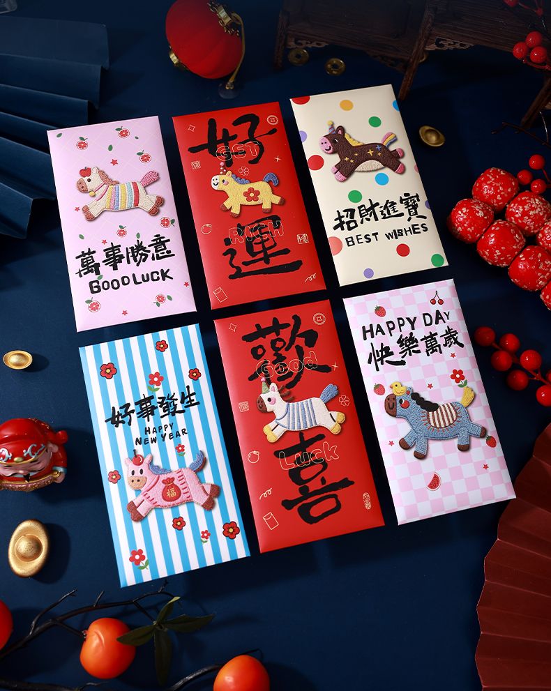 2026年刺繡風格卡通小馬動物紅包春節新年通用個性創意利是封