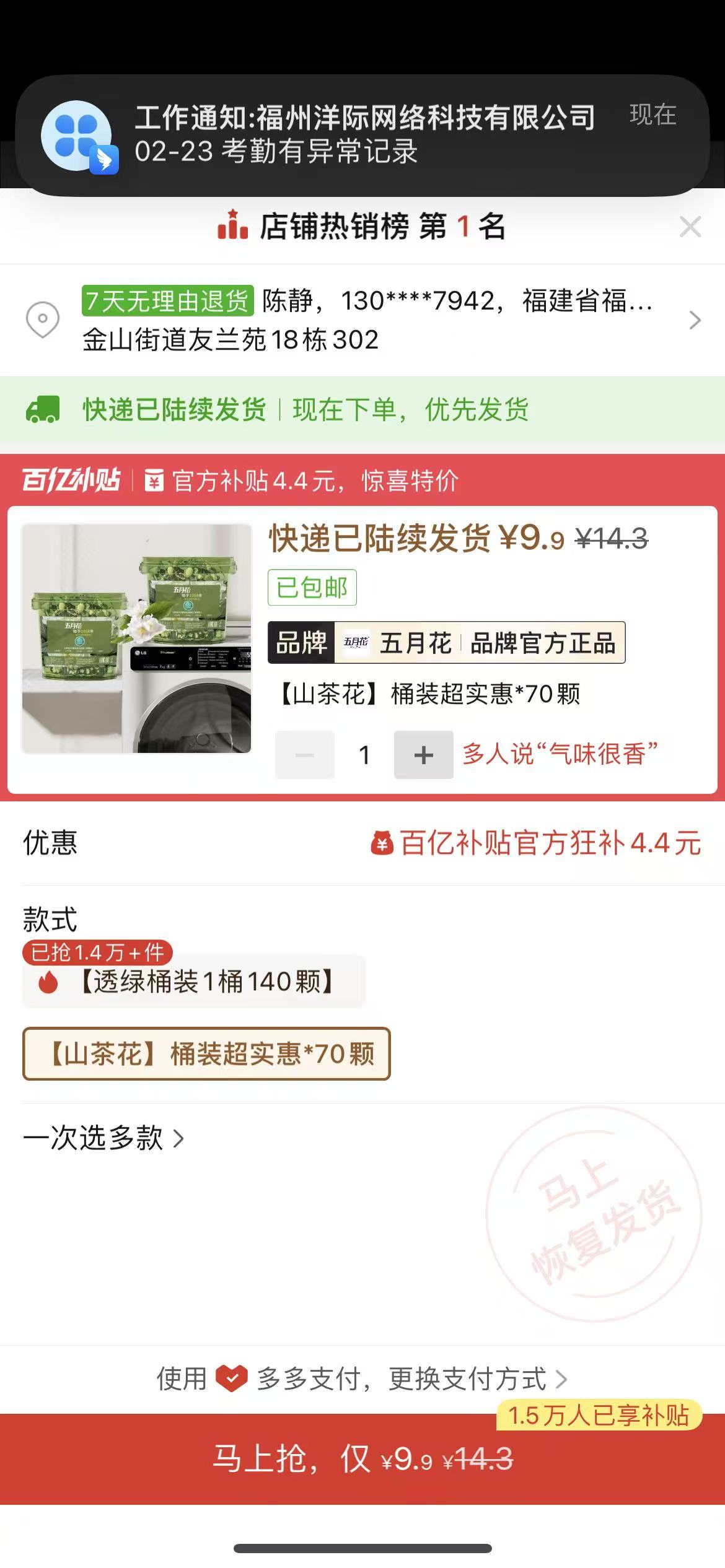 ②山茶花洗衣凝珠1罐 9.9 https://mobile.yangkeduo.com/goods.html?ps=jDnmfkjpl7