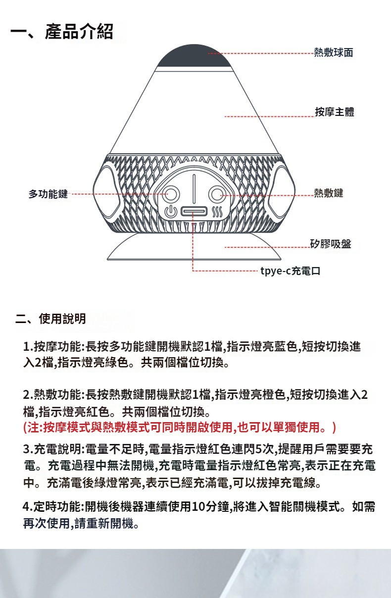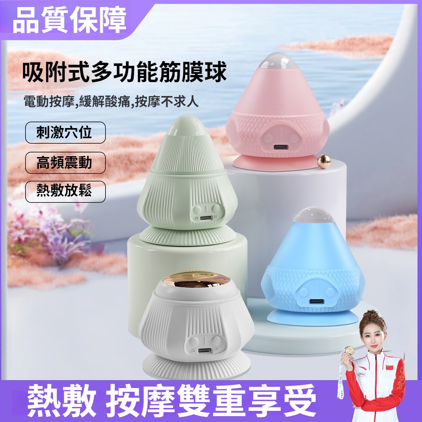 第 1 件 : 電動附式筋膜球吸運動肌肉肩頸腰部筋膜放松震動熱敷按摩器按摩球