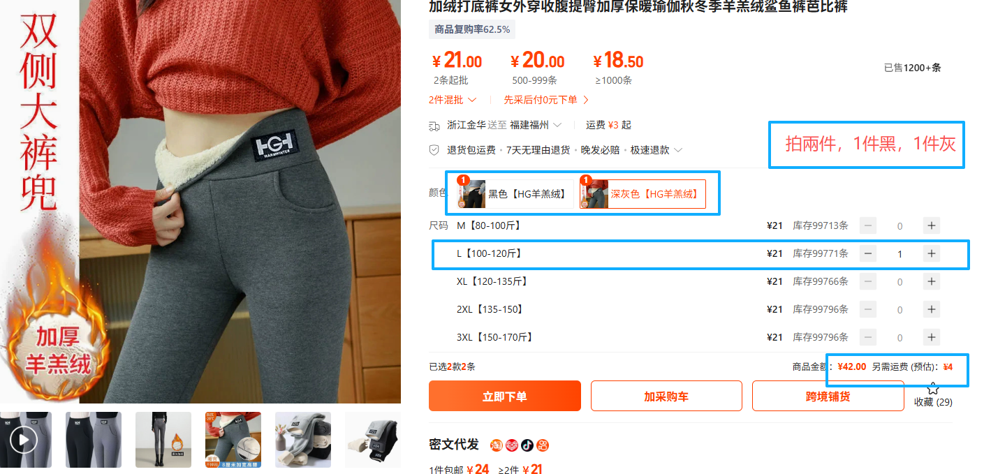 ①羊羔絨加絨外穿打底褲女【L】 2件(黑色*1、灰色*1)
