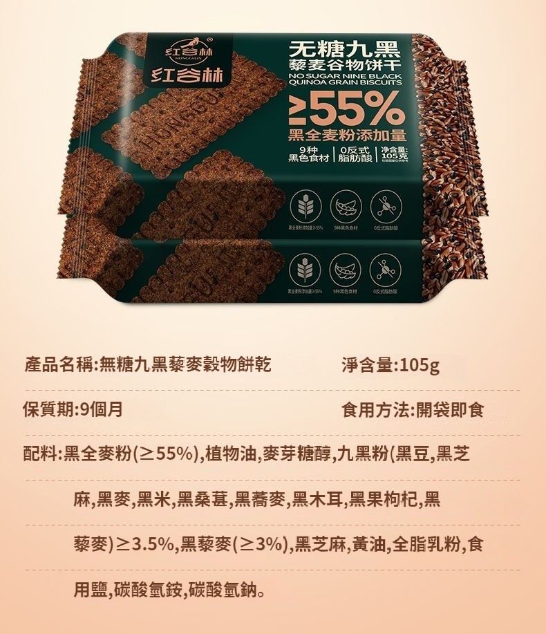 無糖9黑藜谷物餅乾解饞小零食健康網紅辦公室早餐粗糧 NT$ 899