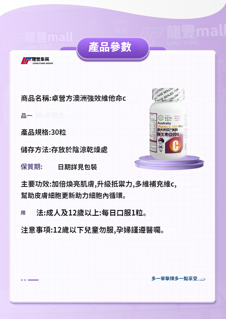 YES NUTRI卓營方澳洲強效維他命C1000提高免疫力抵抗力vc