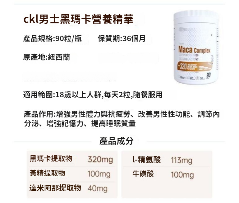 【CKL黑玛卡黄精精氨酸】增強男性體力與抗疲勞、改善男性性功能、調節內分泌 、增強記憶力、提高睡眠質量 NT$ 999
