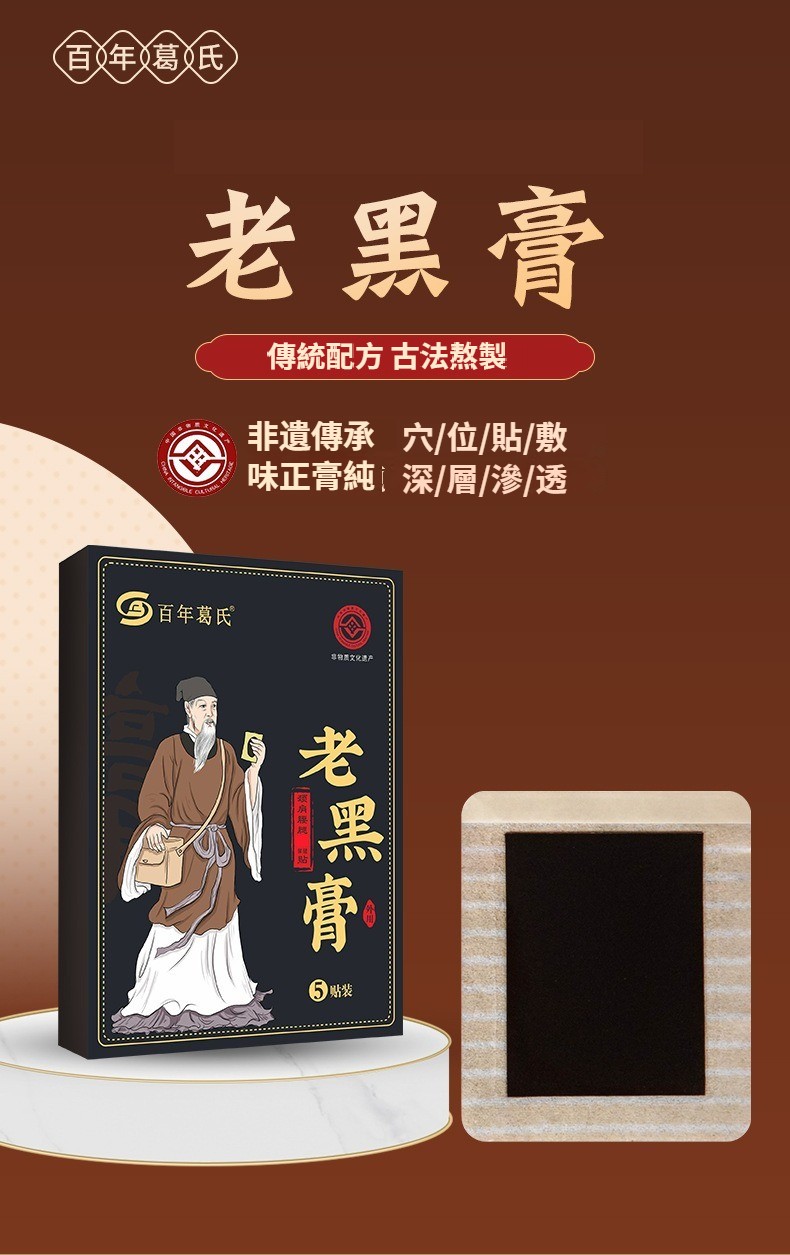 非遺老黑膏、膏藥貼頸椎貼腰間盤突筋骨膏藥膝蓋貼黑膏富貴包