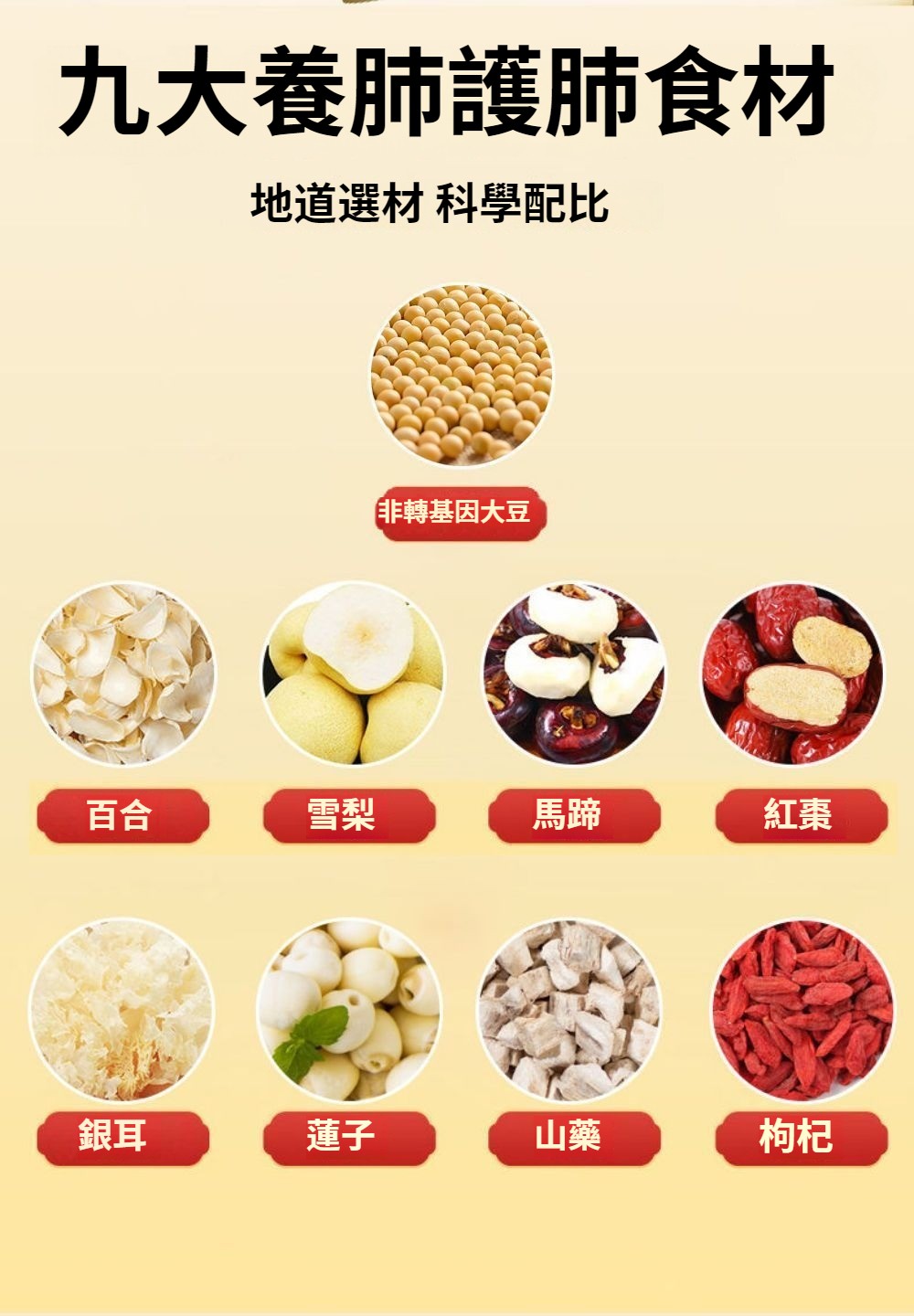養肺豆漿.九大養肺護肺食材:非转基因大豆 百合 雪梨 马蹄 红枣 银耳 莲子 山药 枸杞,地道選材 科學配比 NT$ 899