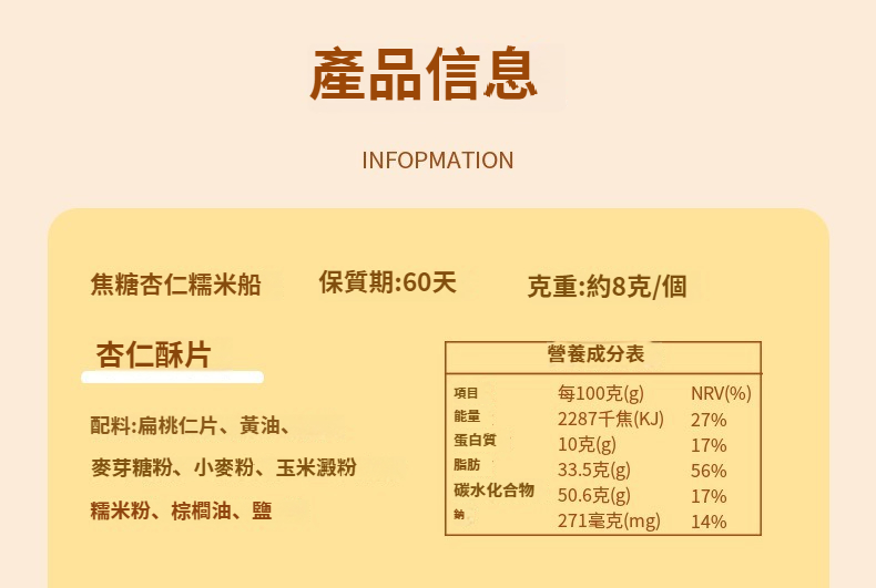 焦糖杏仁糯米船酥營養解饞下午茶酥脆堅果點心零食整箱 NT$ 899