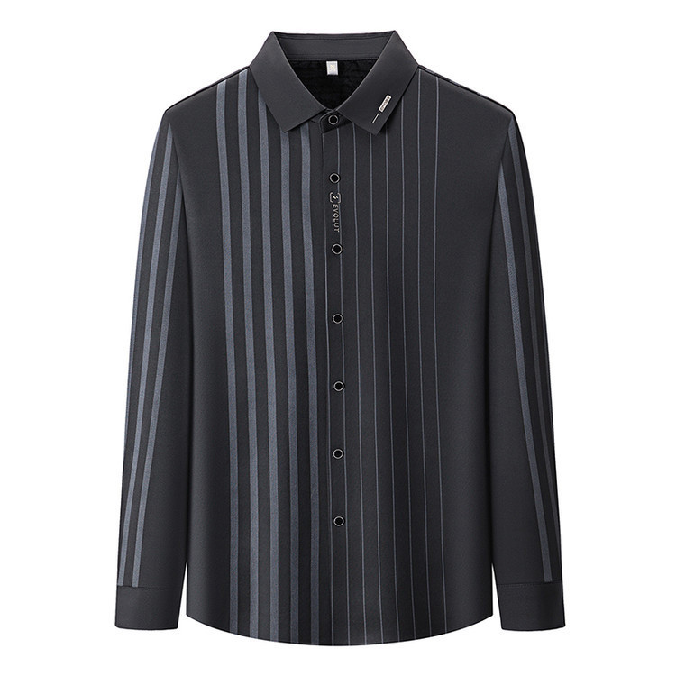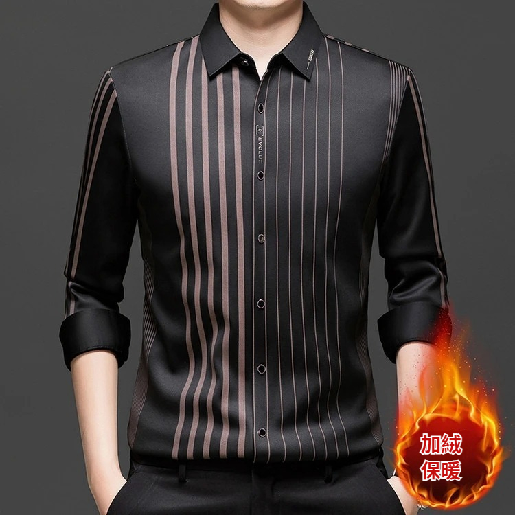 秋冬長袖襯衫男士中年加絨加厚休閑商務無痕免燙保暖襯衣爸爸裝