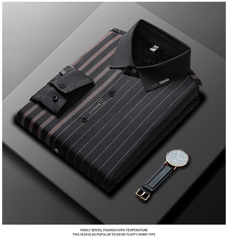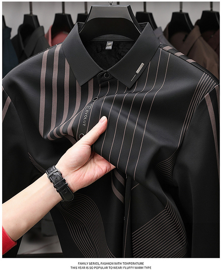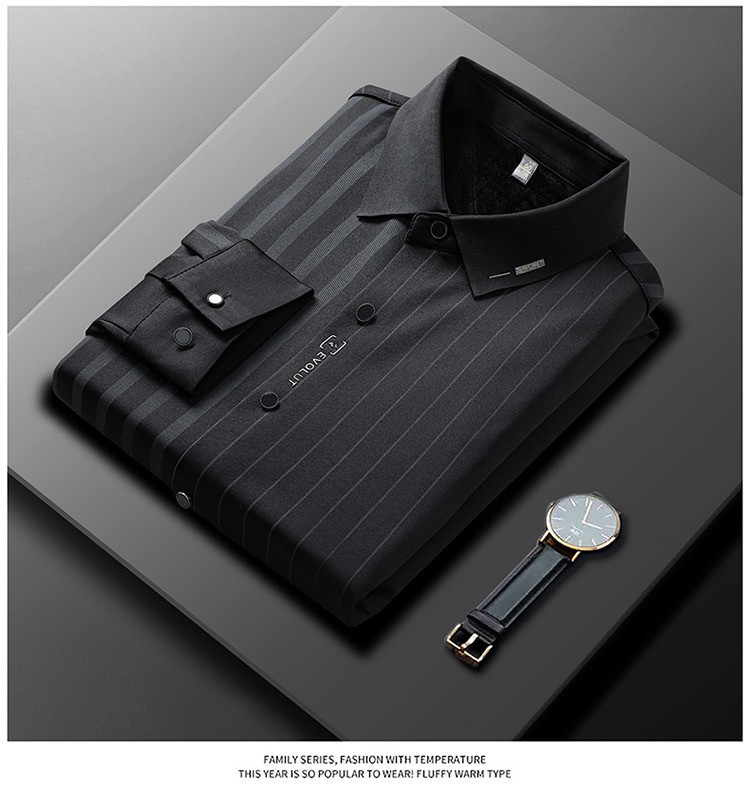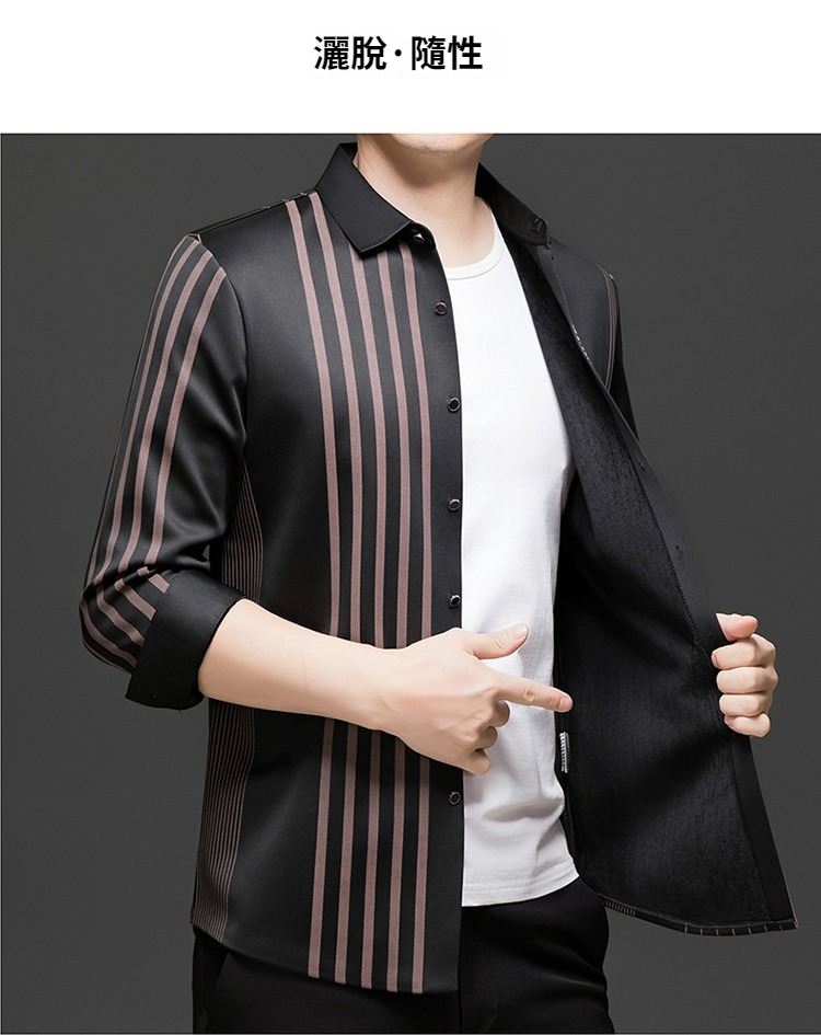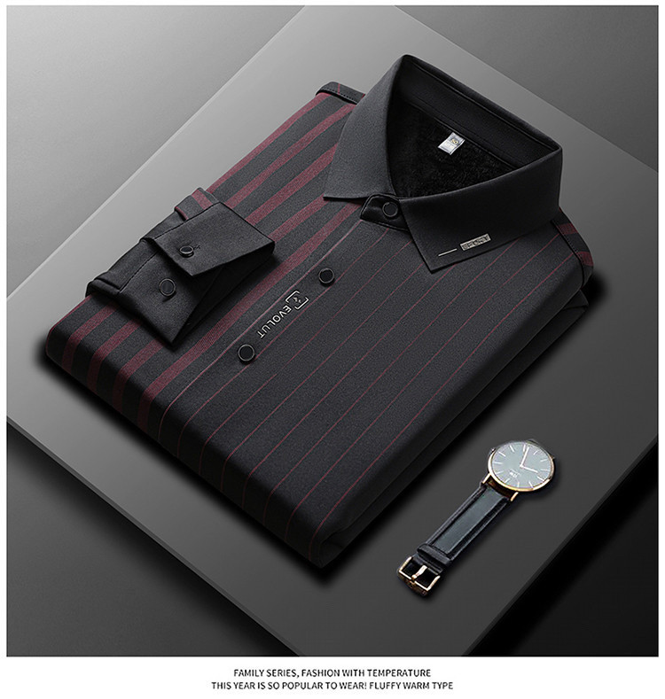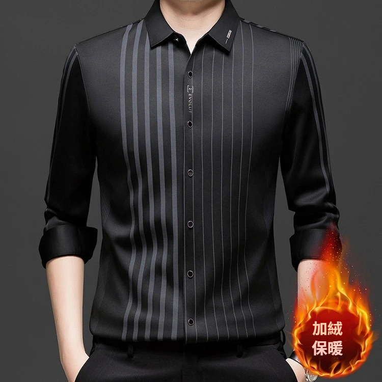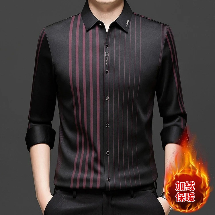 第 1 件 : 秋冬長袖襯衫男士中年加絨加厚休閑商務無痕免燙保暖襯衣爸爸裝