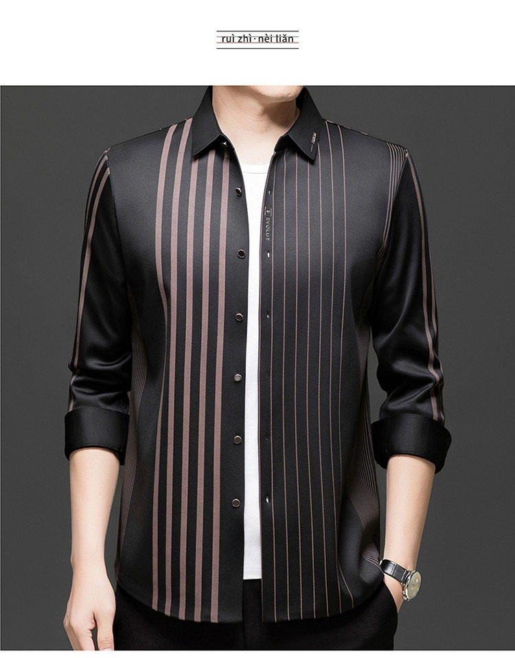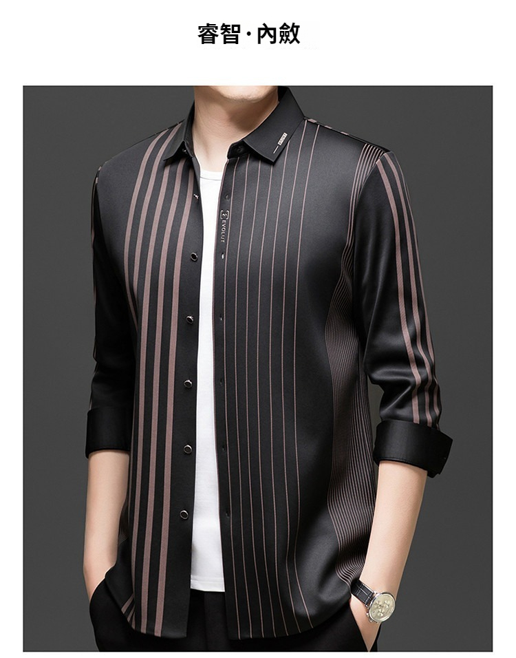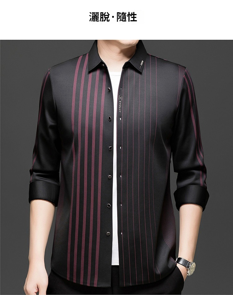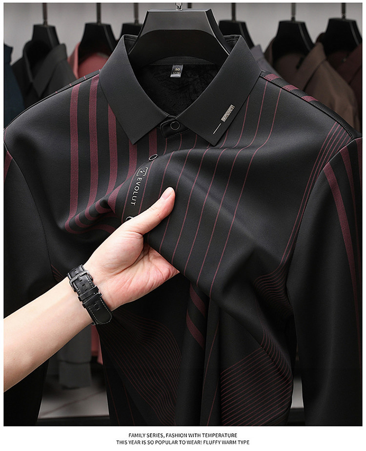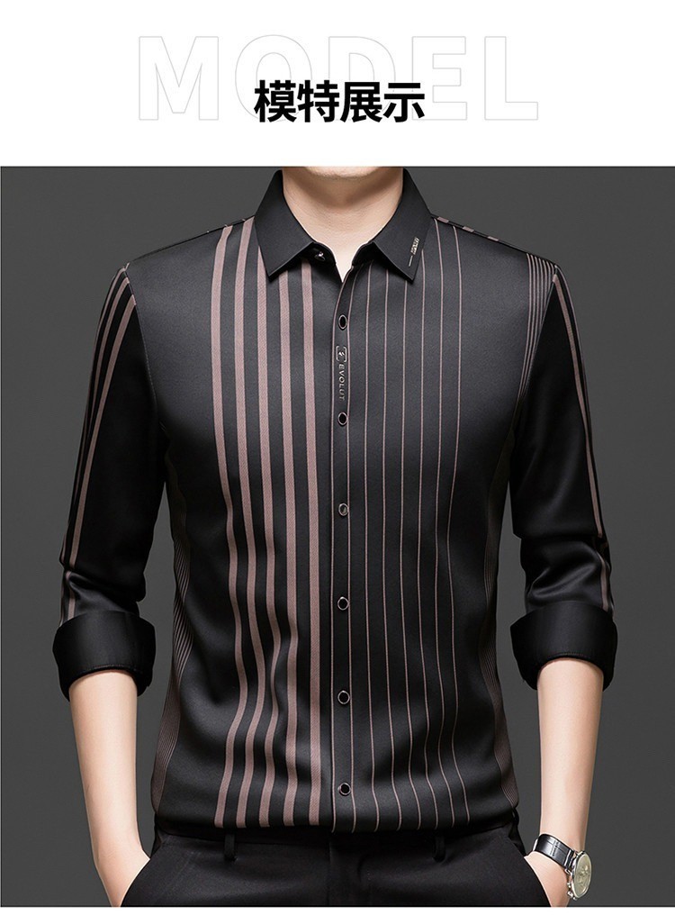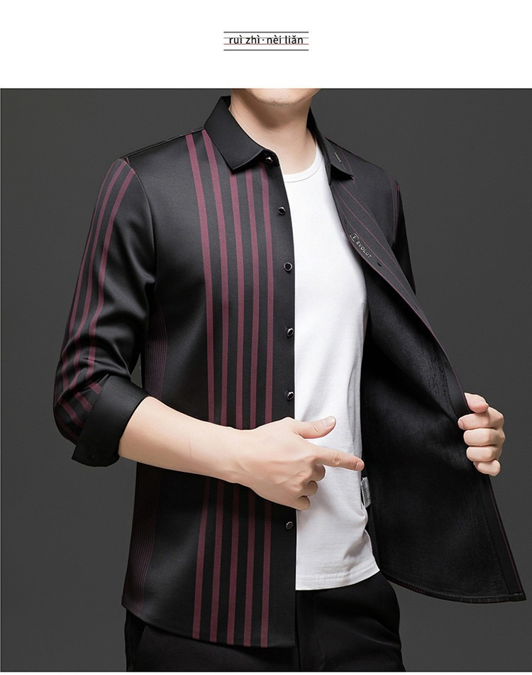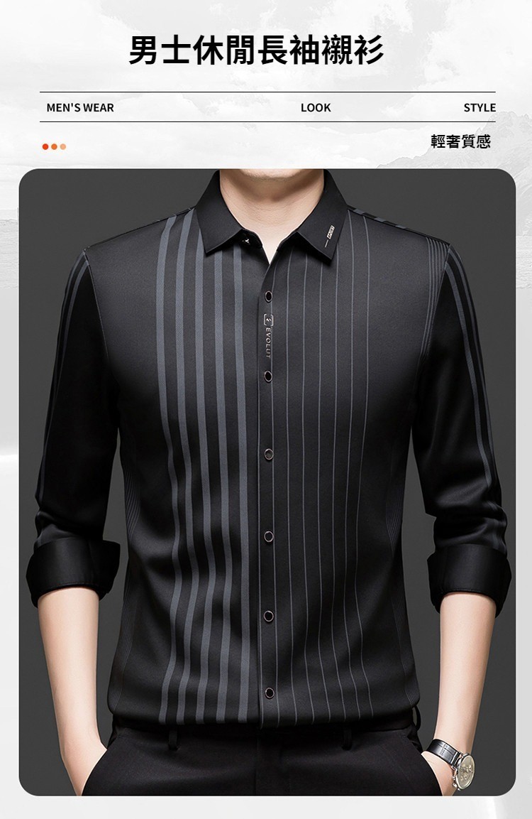 第 1 件 : 秋冬長袖襯衫男士中年加絨加厚休閑商務無痕免燙保暖襯衣爸爸裝