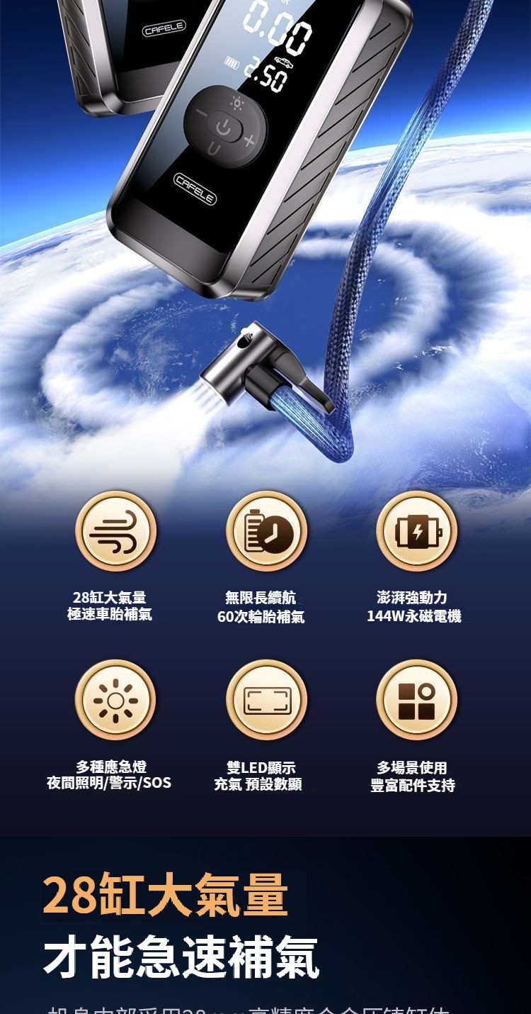 2025年新款車載無線電動打氣機,飛樂打氣王(充電寶/打氣筒/電動充氣/打氣機/輪胎打氣),5分鐘即能完整打飽一條輪胎,一機多用/場景不受限,多種充氣模式,滿足不同補氣需求,優惠便宜好價格,限時搶購! S$ 1398