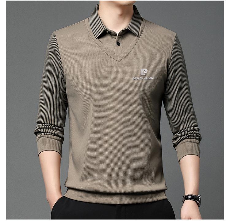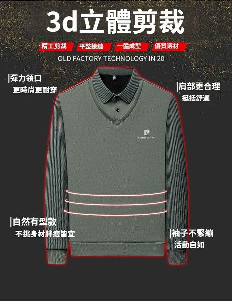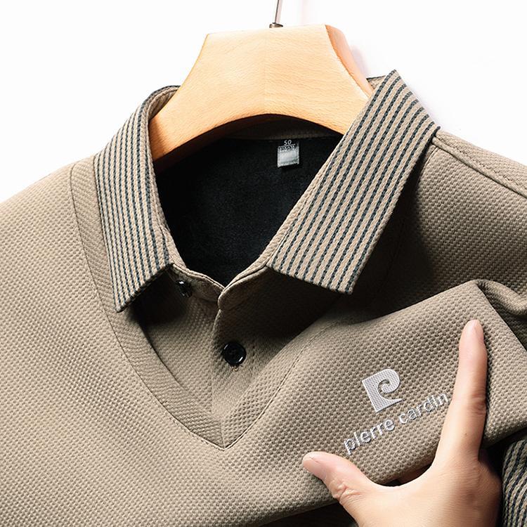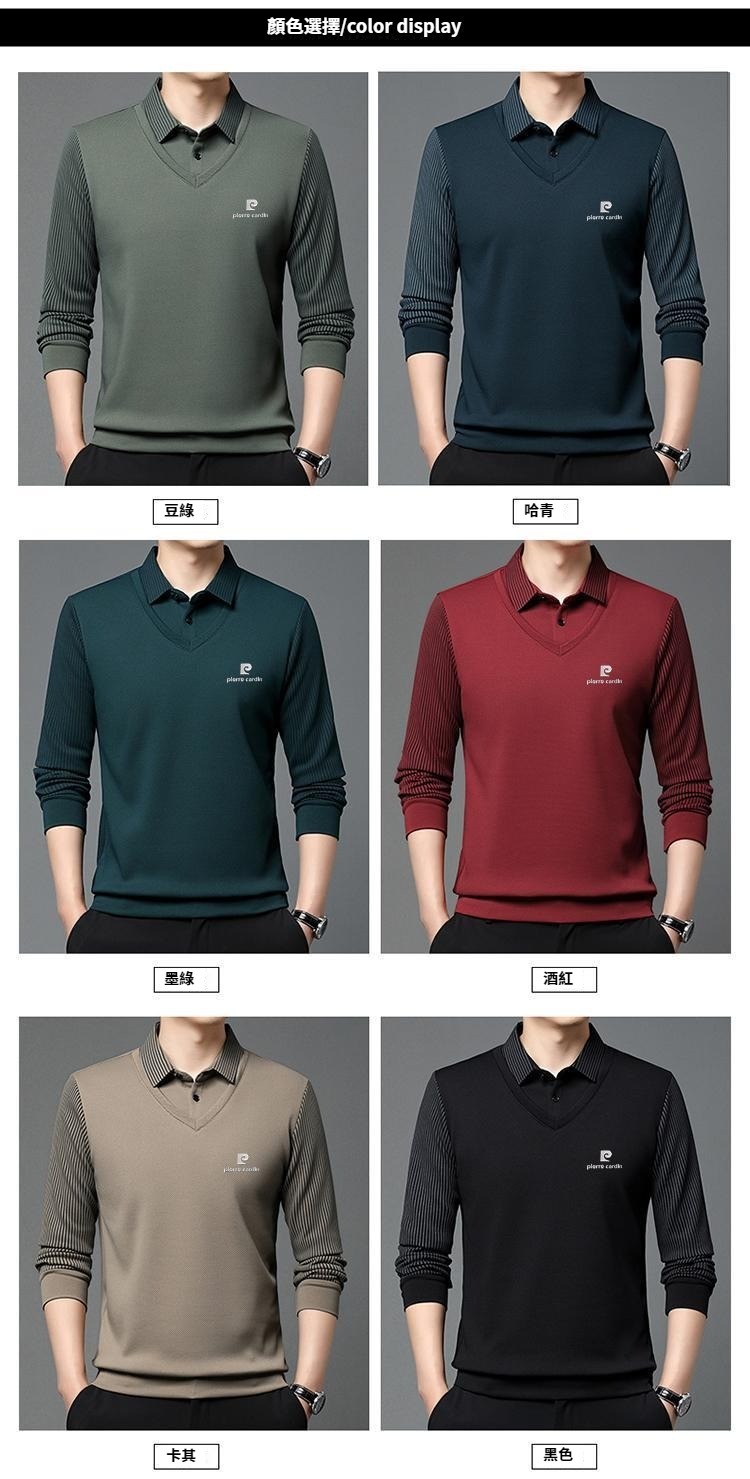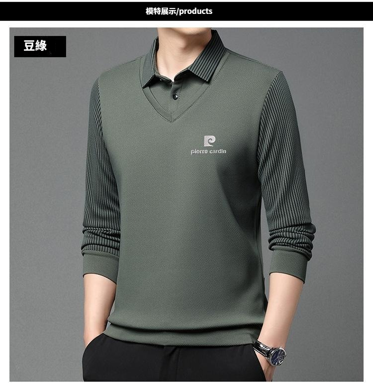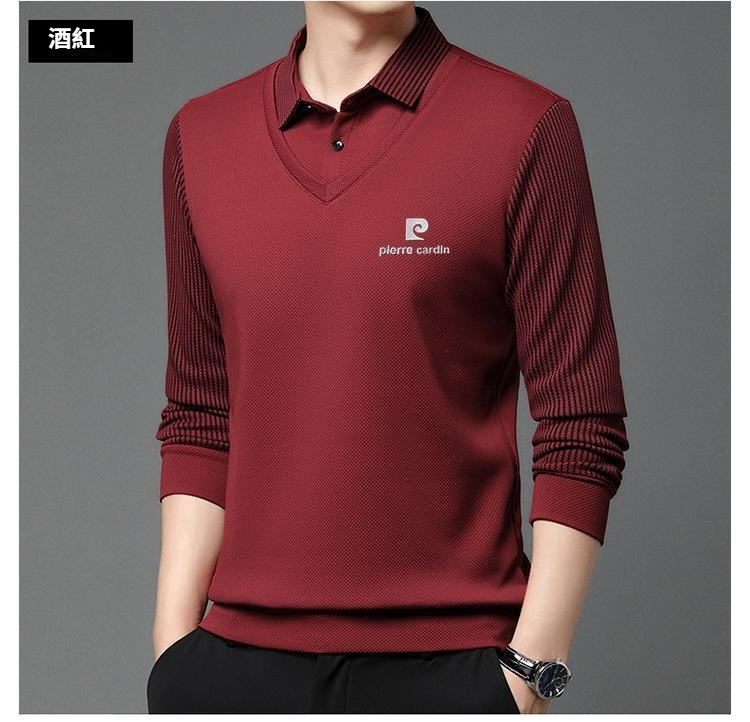 第 1 件 : 高級男士加絨加厚假兩件Polo衫冬季保暖長袖T卹襯衫打底
