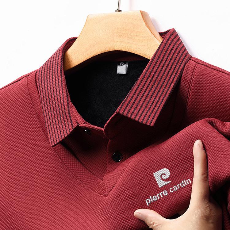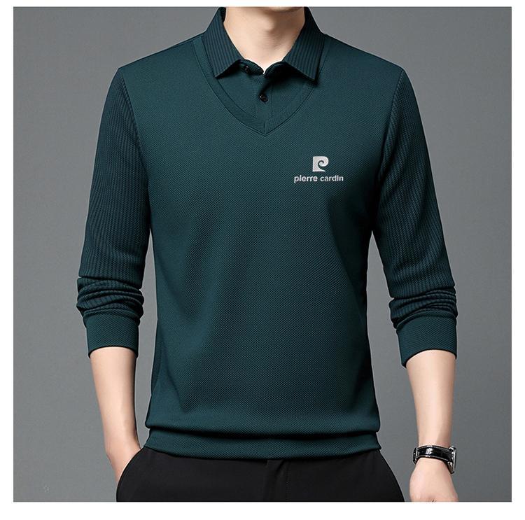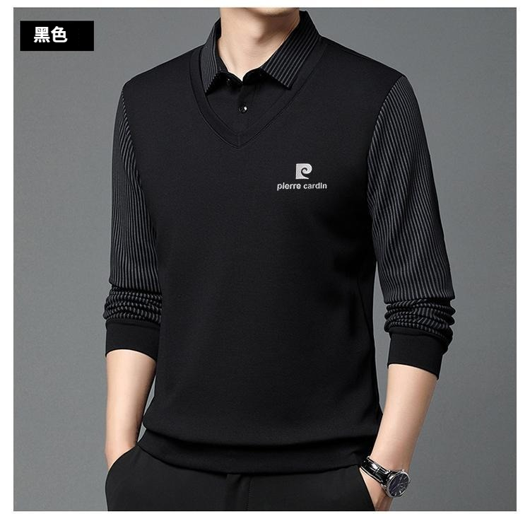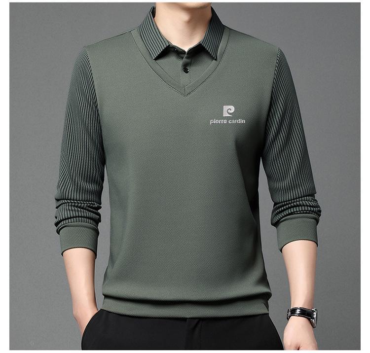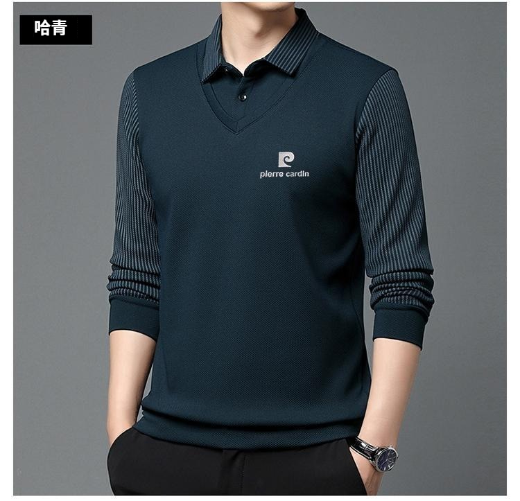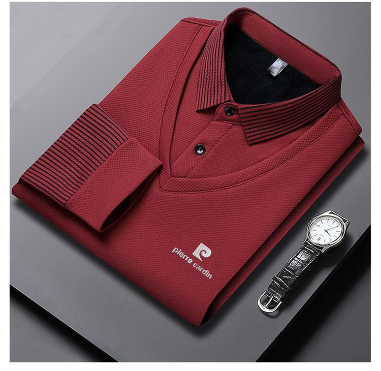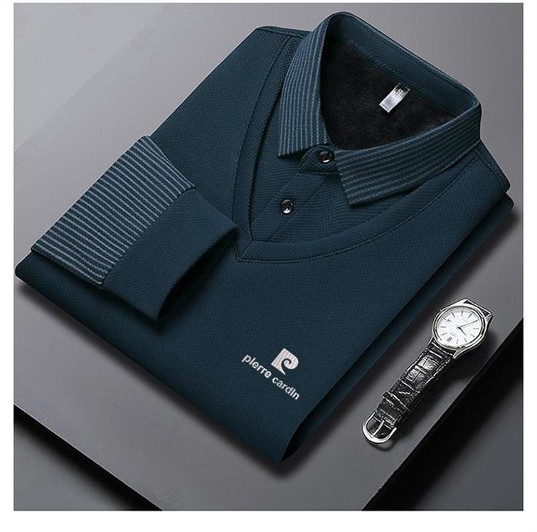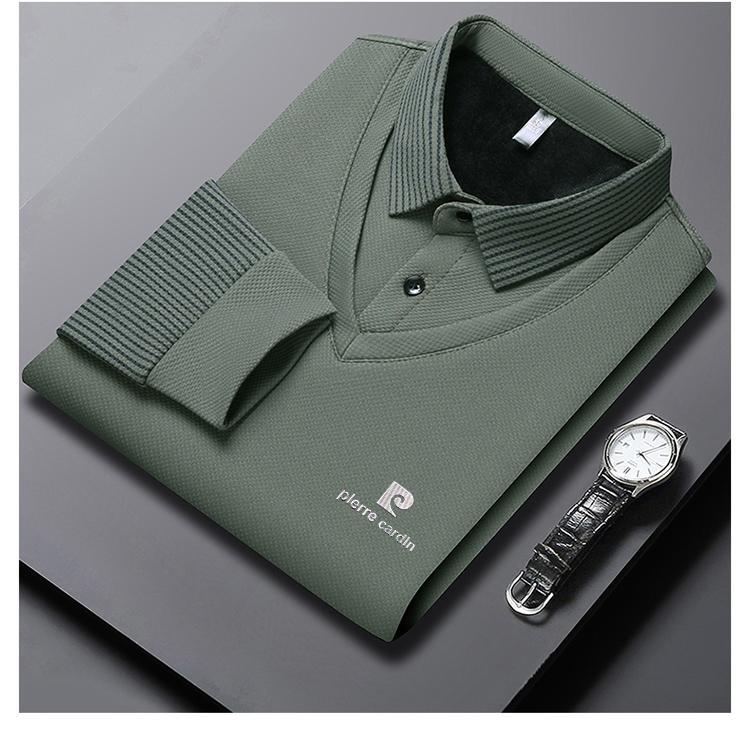 第 1 件 : 高級男士加絨加厚假兩件Polo衫冬季保暖長袖T卹襯衫打底
