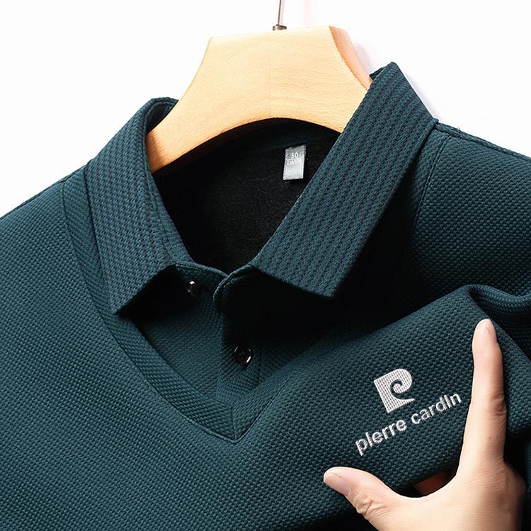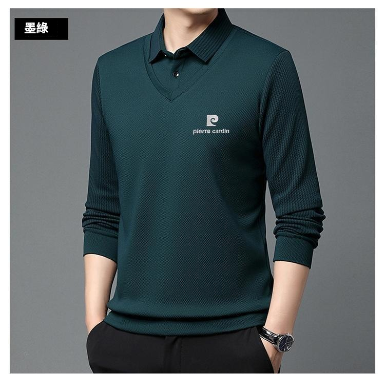 高級男士加絨加厚假兩件Polo衫冬季保暖長袖T卹襯衫打底