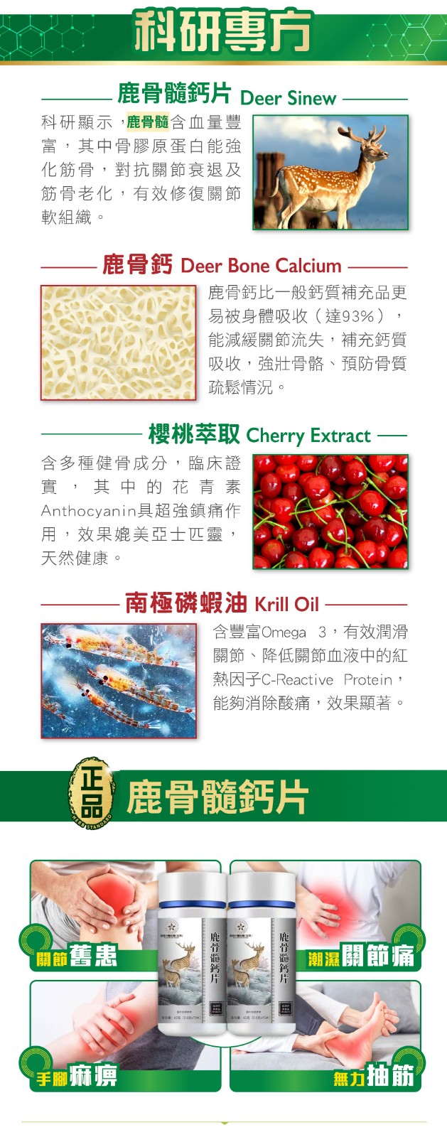 鹿骨髓鈣片,護骨、透骨、養骨於一體,又兼具「疏經通絡、活血除痺、創傷修復」多重功效,現受益人群已破百萬+ NT$ 899