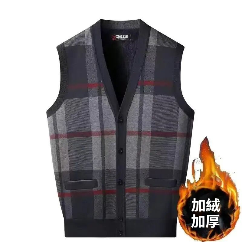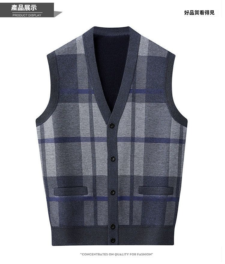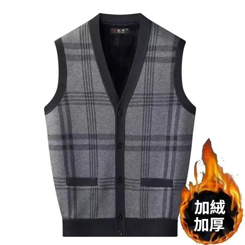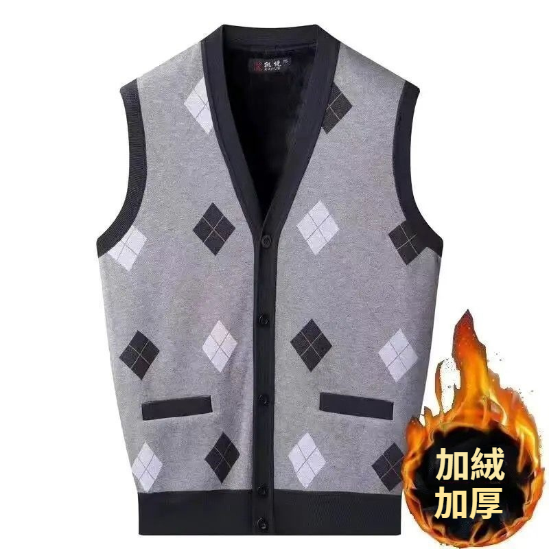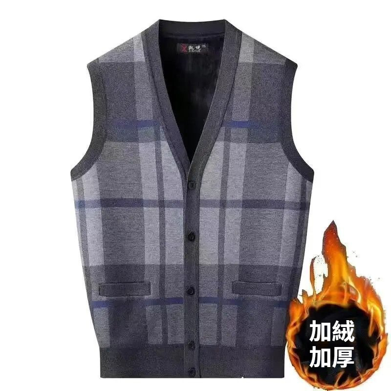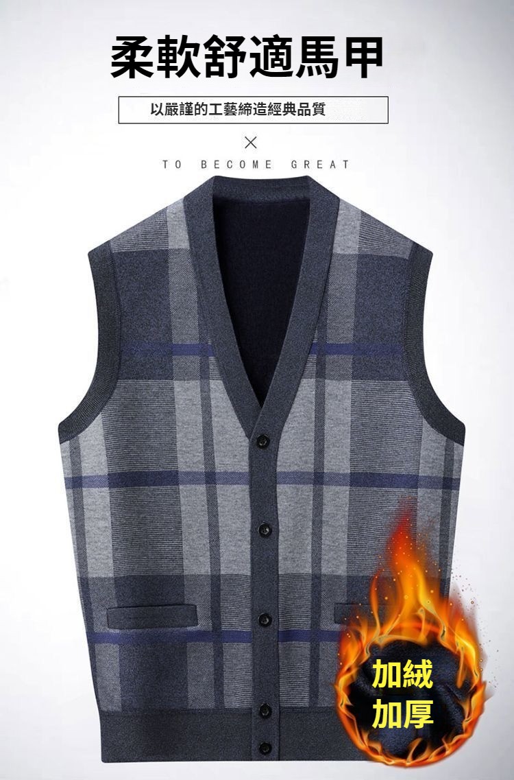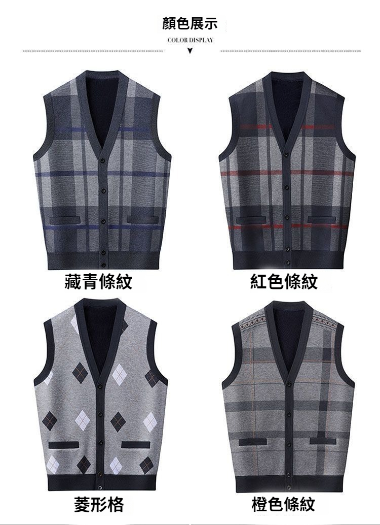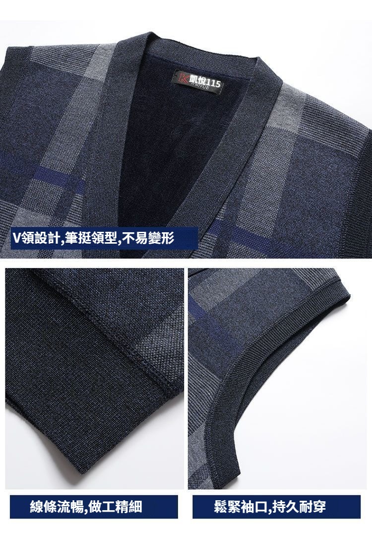 第 1 件 : 男士新款中老年加絨毛衣開襟背心 爸爸裝V領大尺碼寬鬆坎肩秋冬馬甲