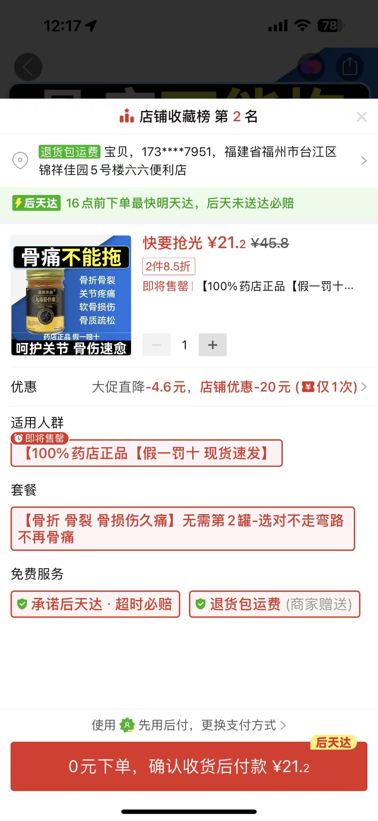 ①九毒筋骨康1瓶 ②紐西蘭睪丸素1瓶120粒 ③筍珍香罐頭1罐(59.1元)