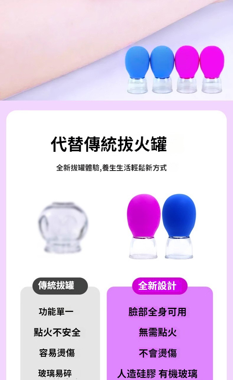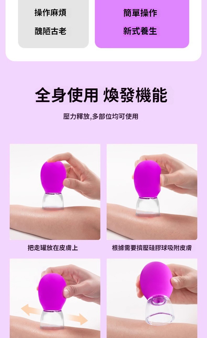 軟膠拔罐器,面部及身體走罐,無需點火,輕鬆提拉肌膚,緊緻淡紋好幫手