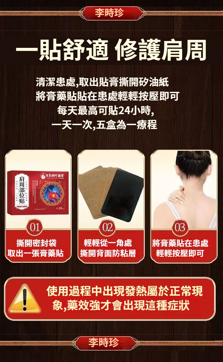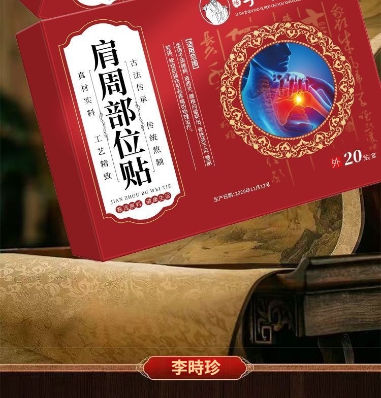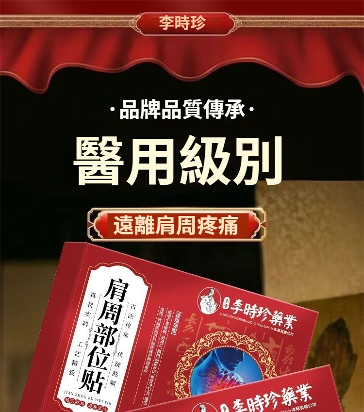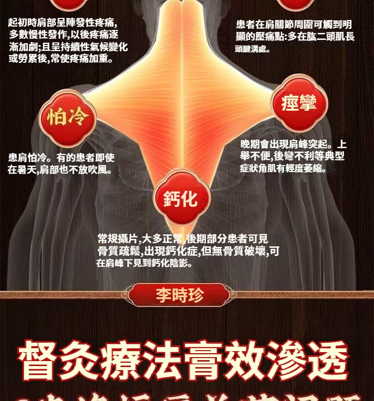 李時珍肩周肩周炎膏貼積液肩膀膏藥酸痛肩袖損傷抬臂困難中藥材貼