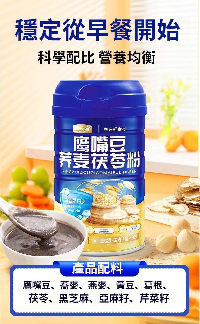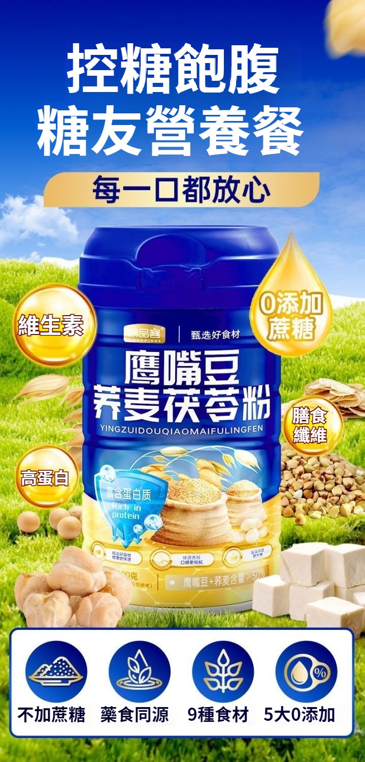 控製糖抗餓糖尿友人主食【鷹嘴豆蕎麥茯莧粉】沖泡即食,方便快速、健康無添加、藥食同源,科學配比:鷹嘴豆、蕎麥、燕麥、黃豆、葛根、茯苓、黑芝麻、亞麻籽、芹菜籽芝麻。好配方才有好食效!