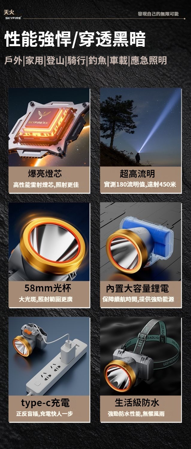 天火頭燈2025新款強光超亮夜釣魚專用頭戴式照明戶外登山礦燈野外